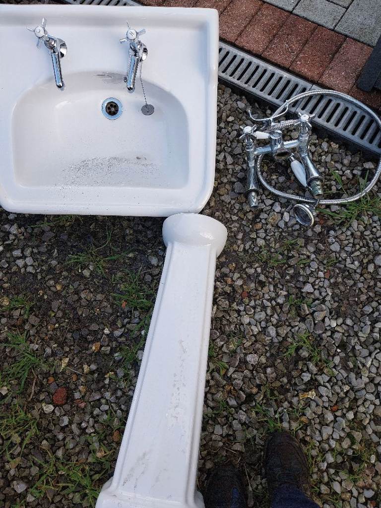 For sale bathroom sink taps and pedestal also bath mixer tap and shower good condition just remove due to refub