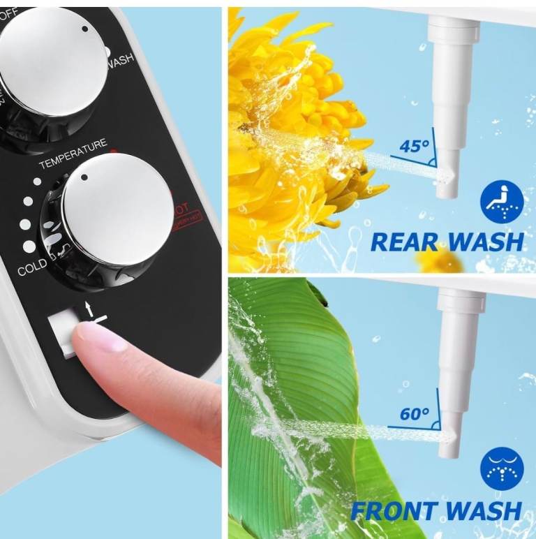 Used Hot and Cold Water Bidet Attachment for Toilet UK, Bidet Warm Water, Non-Electric Ultra-Slim Bidet with Adjustable Water Pressure, Self Cleaning Sprayer with Nozzle Control, for Rear, Frontal Wash.