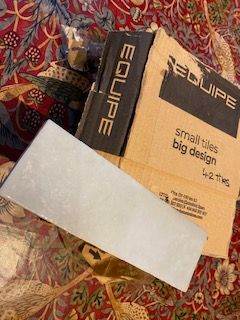 Equipe artesano aqua metro wall tiles, 6.5cm x 20 cm. Currently retail at approx 38p per tile. We have 1 box of 42 tiles, which would cover an area just over 1 sq metre.