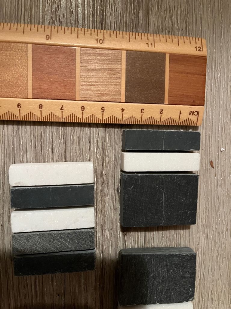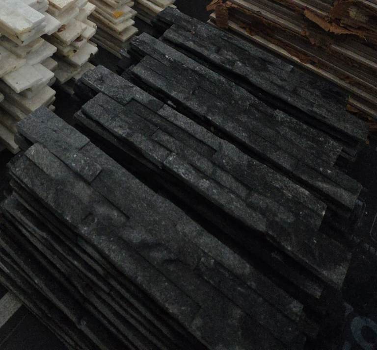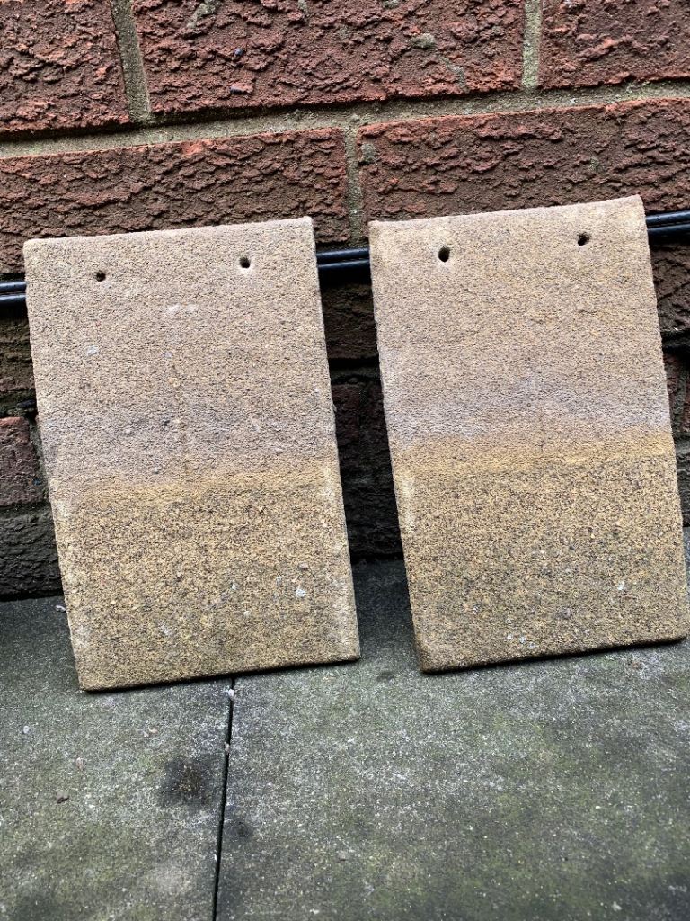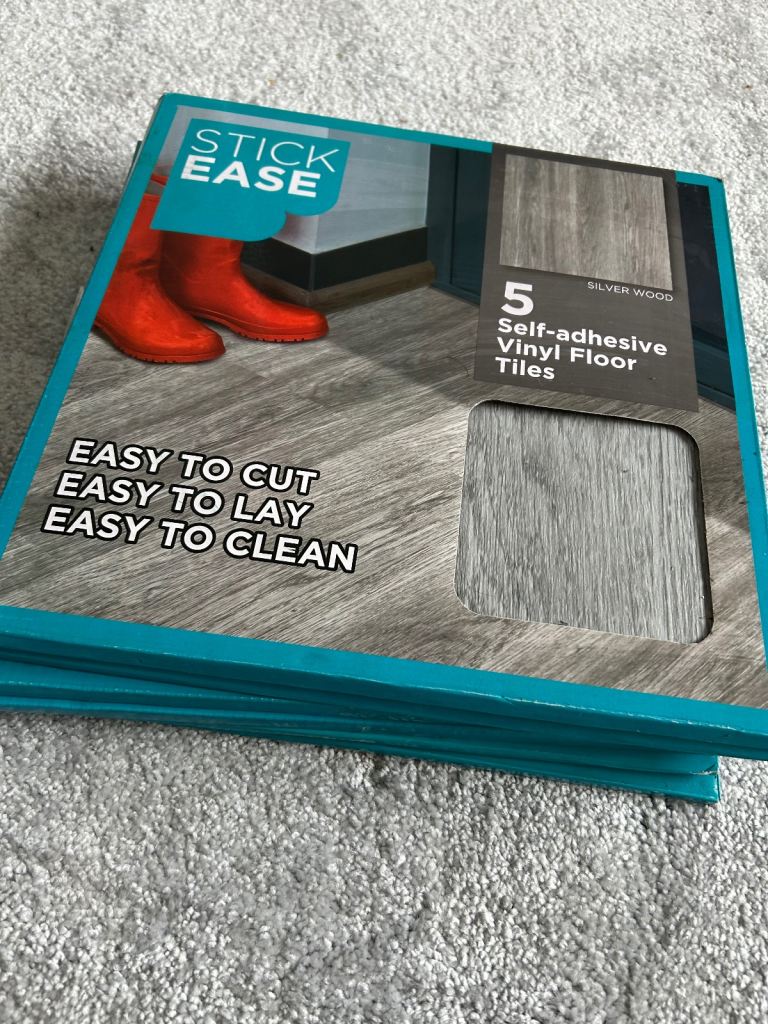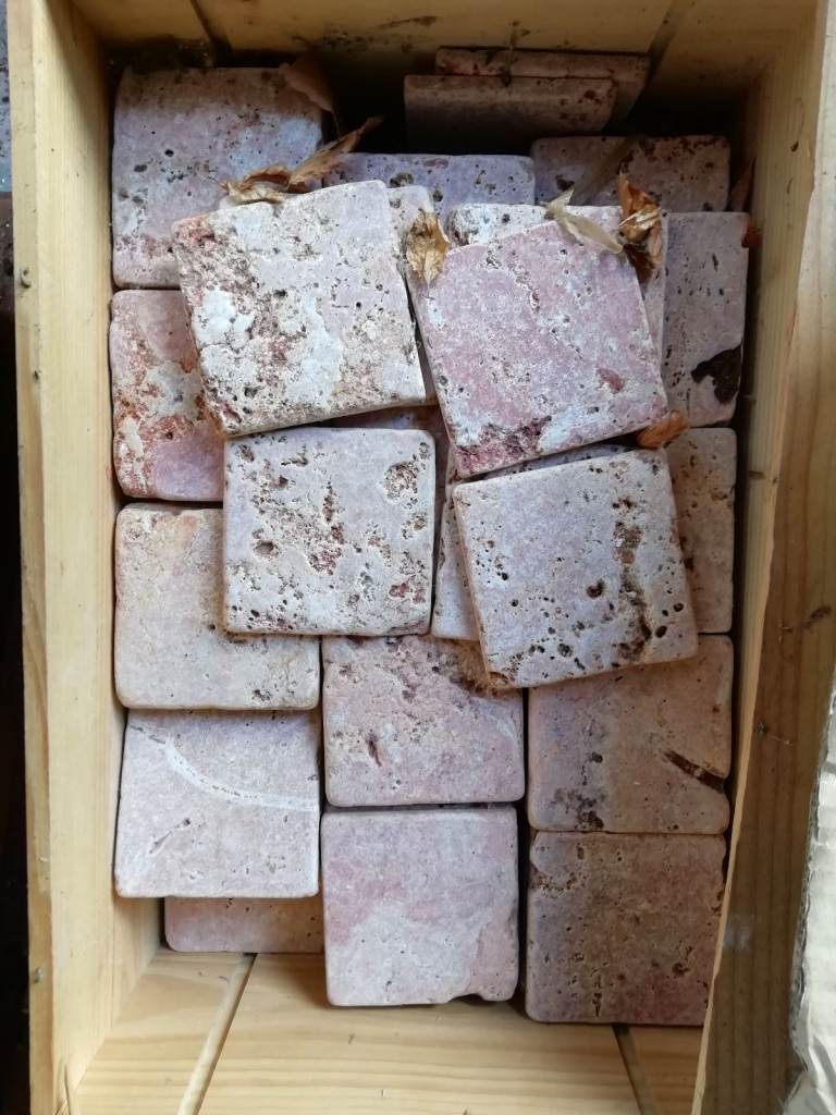 Mat grey and white tiles, leftover from renovation project.