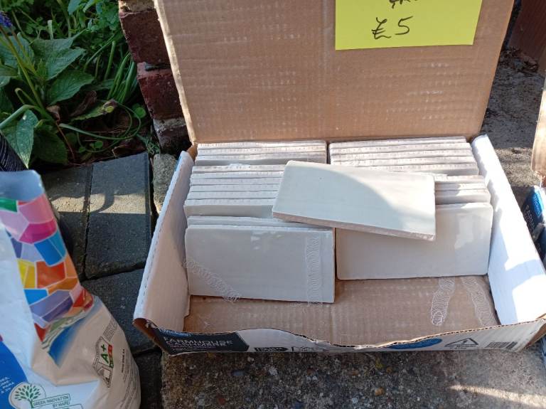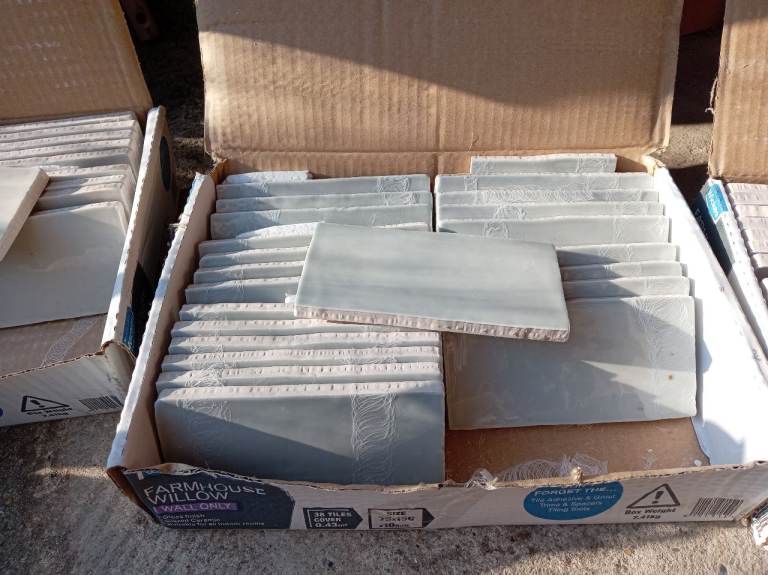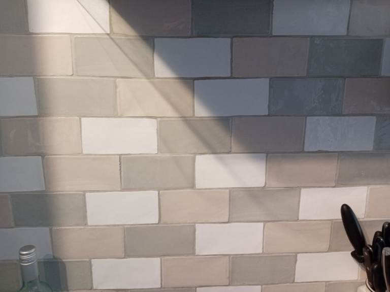 Wickes wall tiles, three colours, plus half a bag of grout. Used for kitchen splashback as shown in last picture. Tiles measure 75mm x 150mm x 10mm.