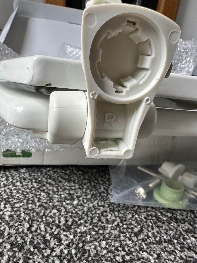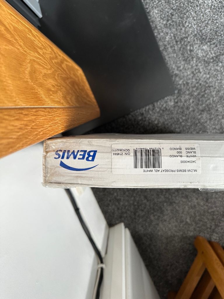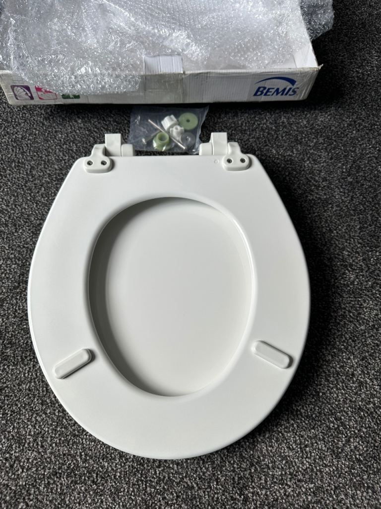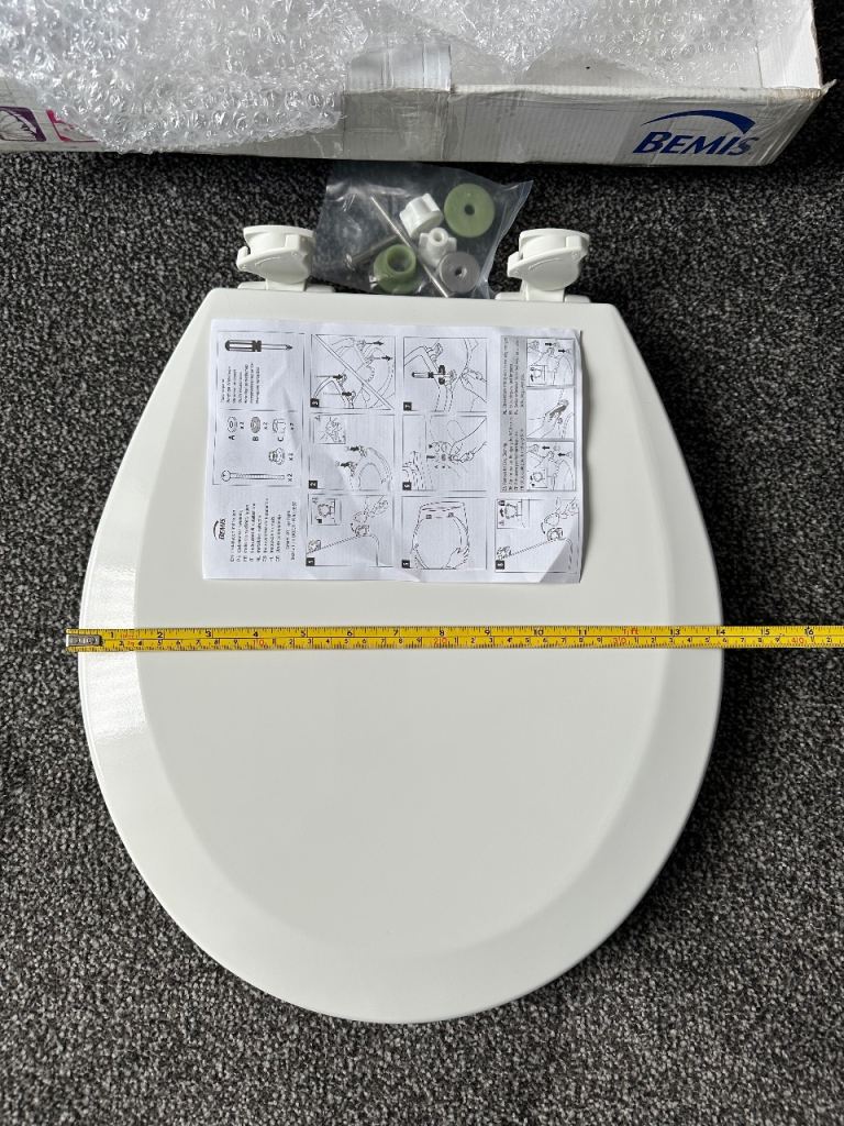 Toilet seat new you can see the sizes on photo only selling it doesn’t fit my toilet it is a quick release seat for cleaning and easy to fi standard toilet there’s a little mark on the seat underneath you will not see it when it on the original price is over £30 it’s on sale for £15