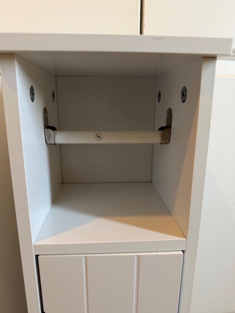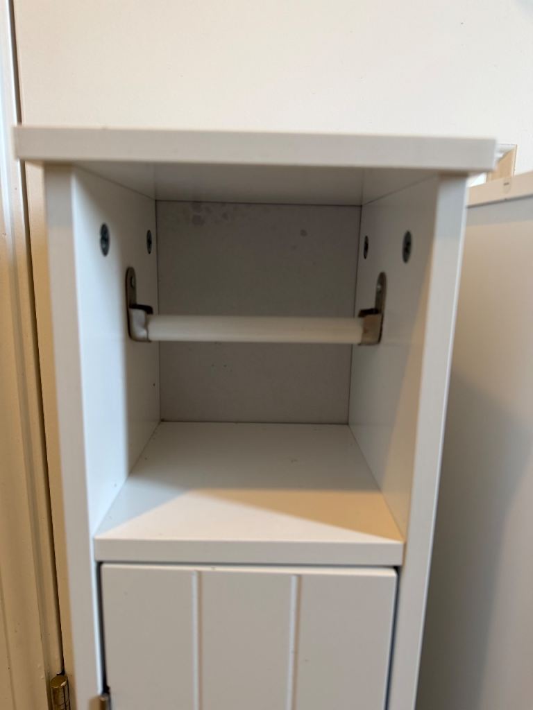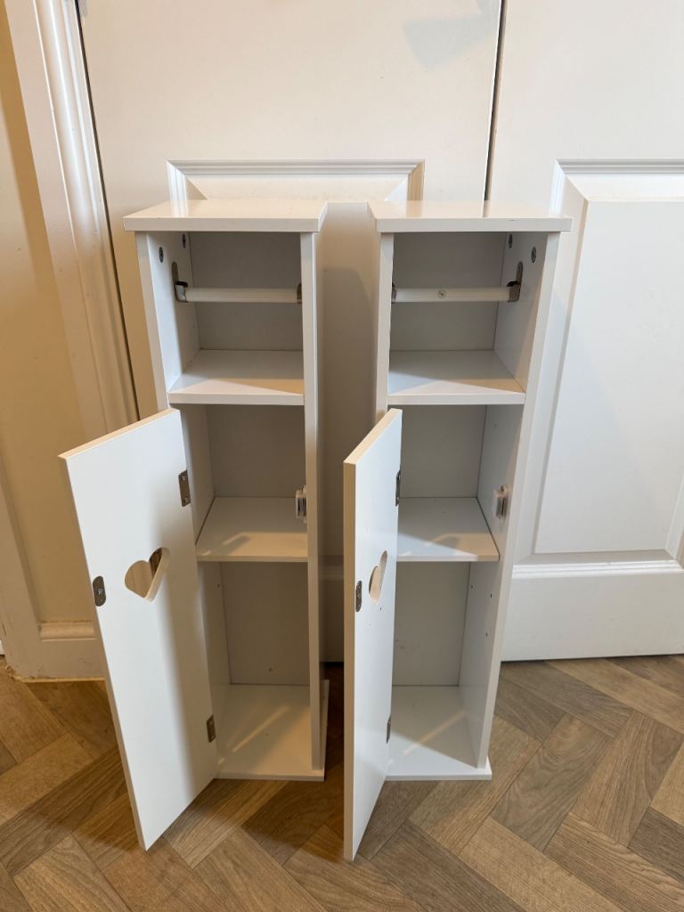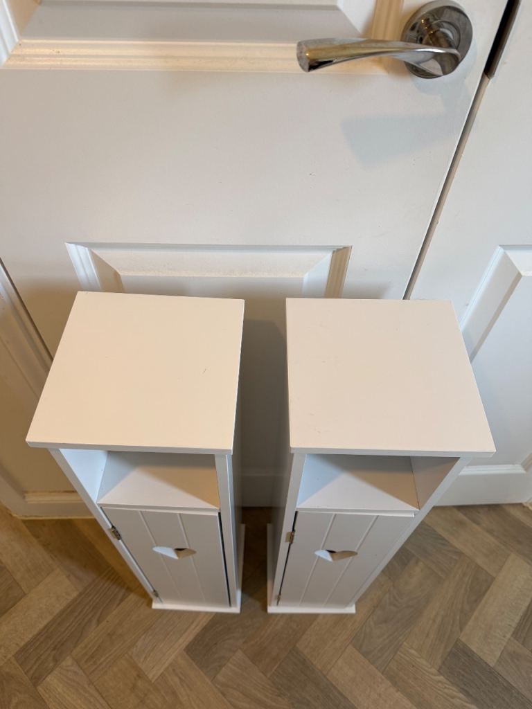 Posting for under a monthPair of White Bathroom Storage Units with Heart Cut-out