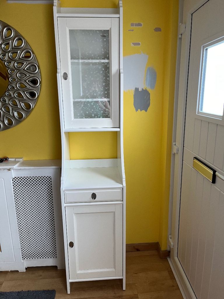 Antique small hang or stand wall unit, 50 H x 47.5 W x 17 cm D. Last pic shows type screw hook, has 1 each side. COLLECTION only City ctr NR11LA
