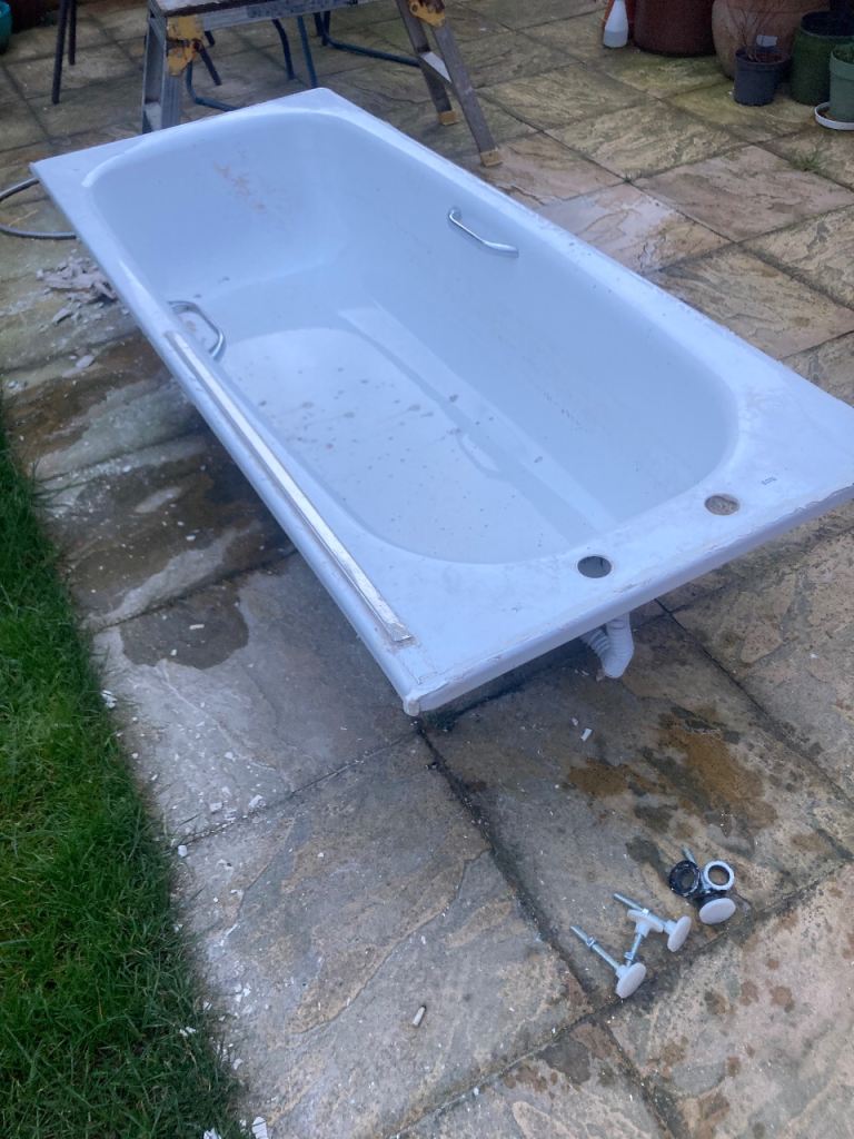 Short bath 1500x 700 as new condition ,complete with taps and pop up waste .removed for wet room .