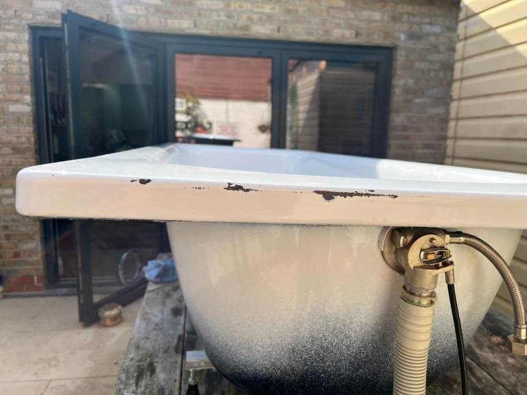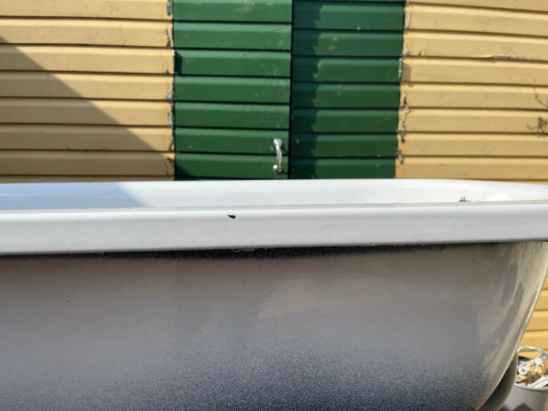 FREE - Enameled metal bath in fair condition, with some cosmetic damage to the edges sustained during removal (see photos). If the bath is panelled, the damage will not be visible.