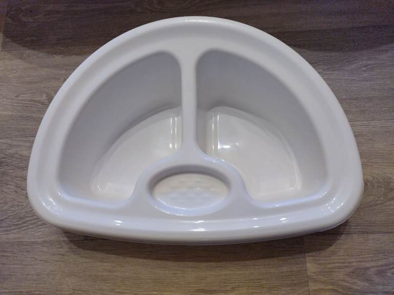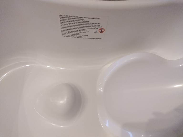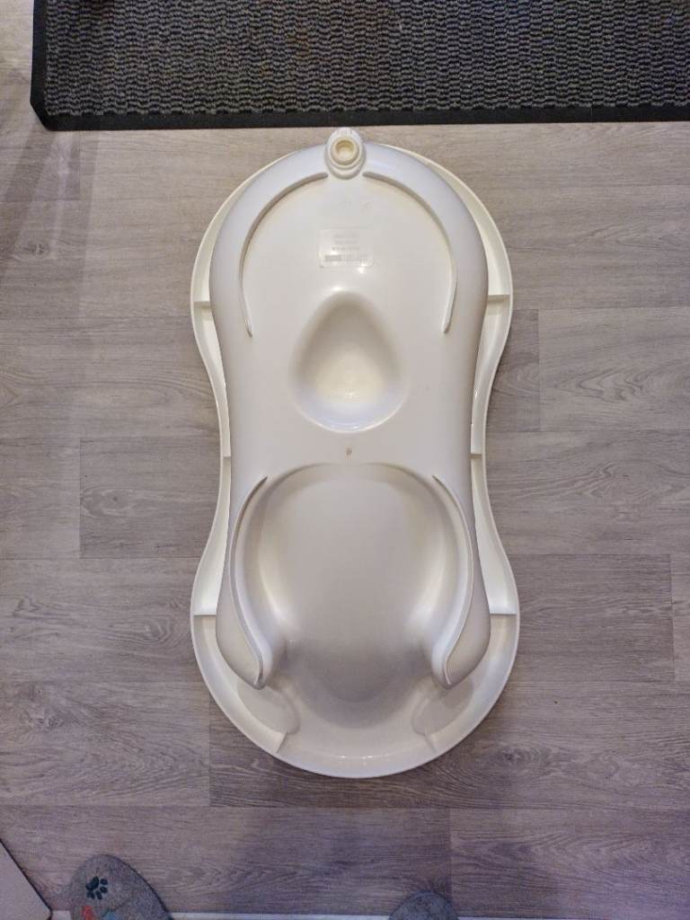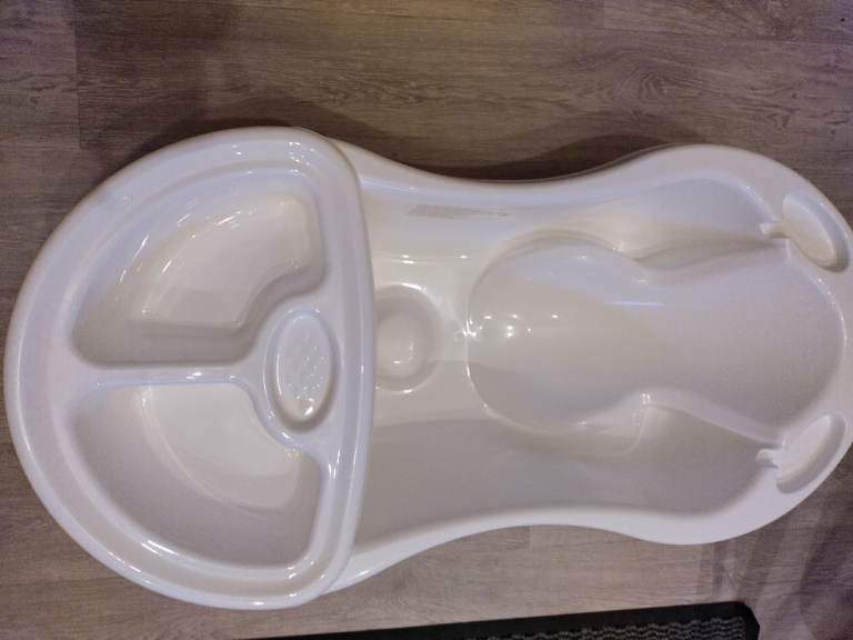 New Large Deluxe Baby Bath Tub with additional Top & Tail Bowl is designed and made in UK. Has inbuilt layback support. Inbuilt soap holder, drainage hole and plug. Suitable for ages newborn to 12 month. This Deluxe Baby Bath large tub . Full dimensions are L 82cm x W 43cm x H 27cm (33 x 18 x 11 inches) Could deliver locally for fuel cost