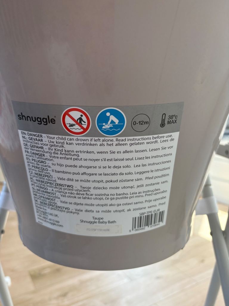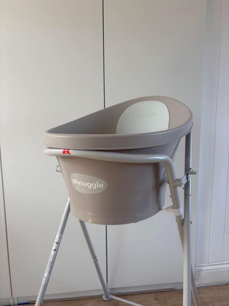Snuggle Baby bath in taupe with Shnuggle bathstand