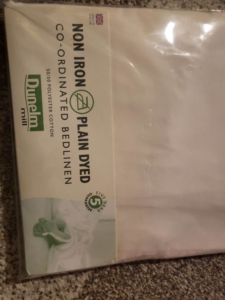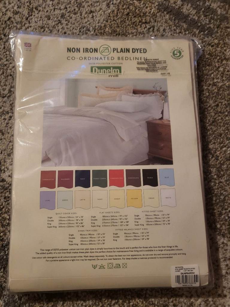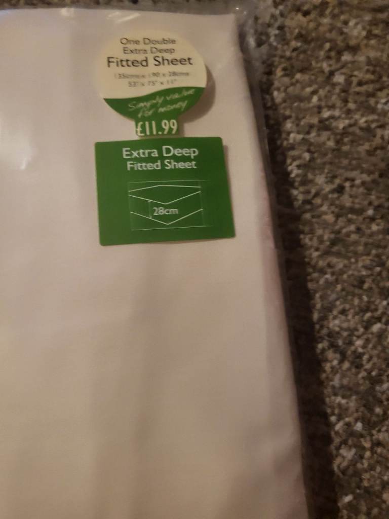 New in packaging 50% cotton 50% polyester deep double fitted sheet.