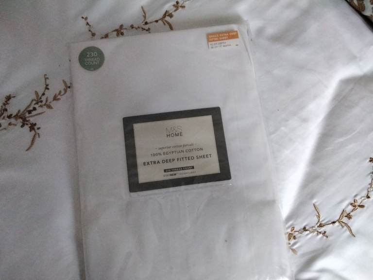 Marks and Spencer White deep fitted sheet, Egyptian cotton 230 thread count. Still wrapped unused .
