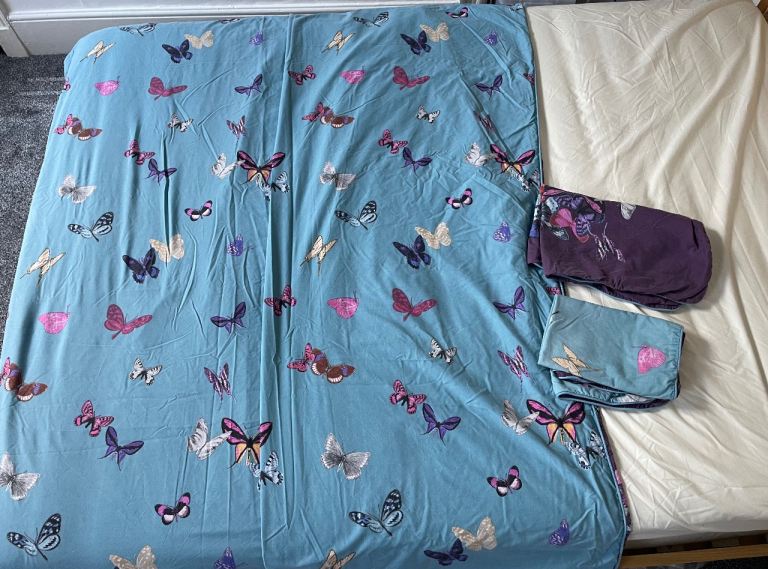 Superking size duvet cover &2 pillowcases blue/purple butterflies reversible design