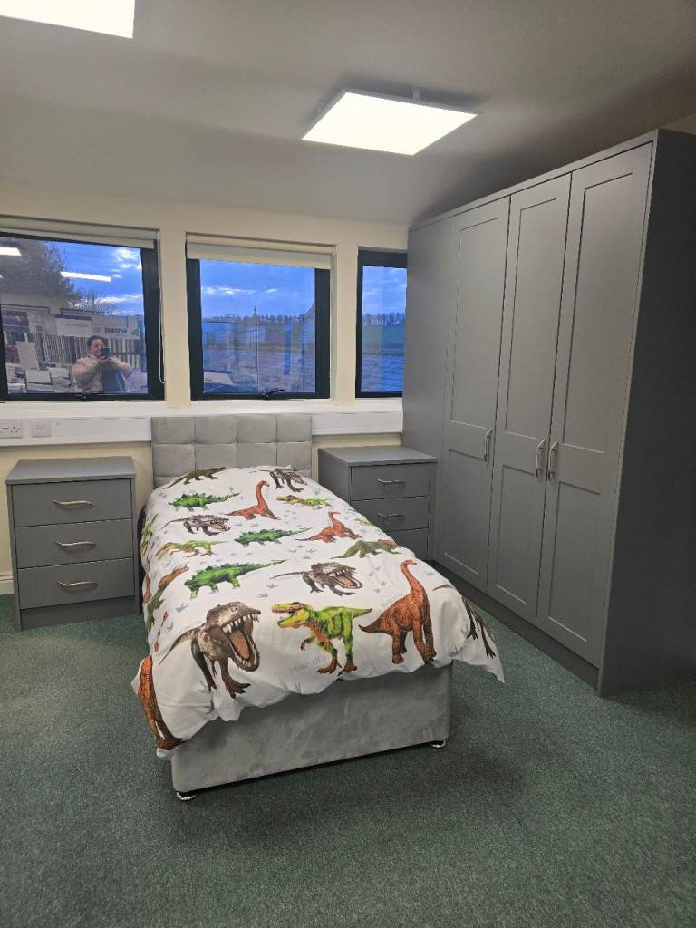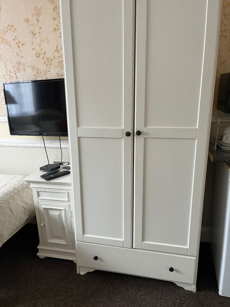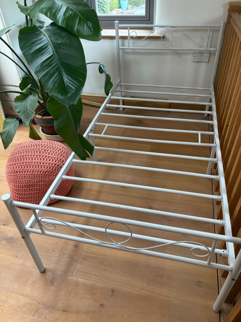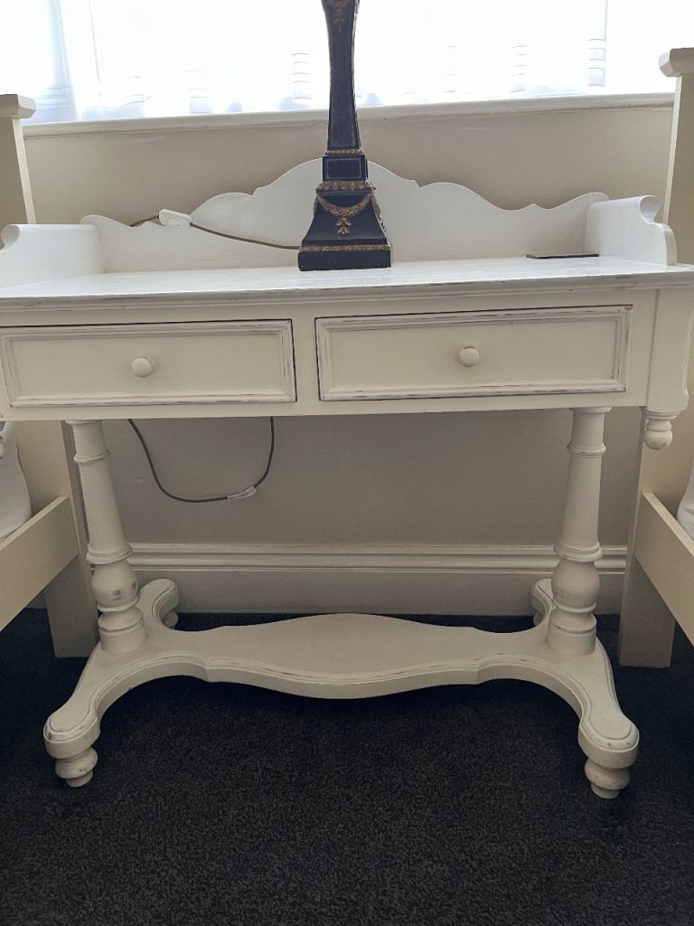 Two single beds, dressing table, side table and wardrobe all in white wood. Available to go end of this April.
