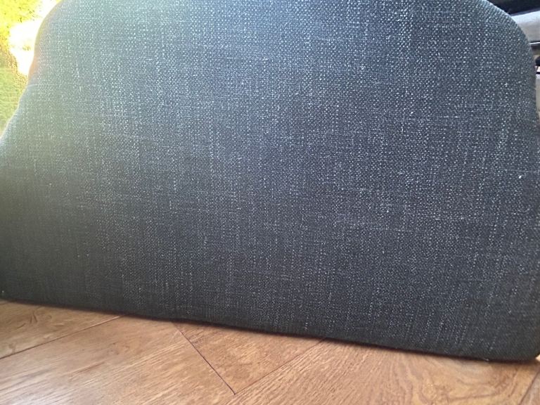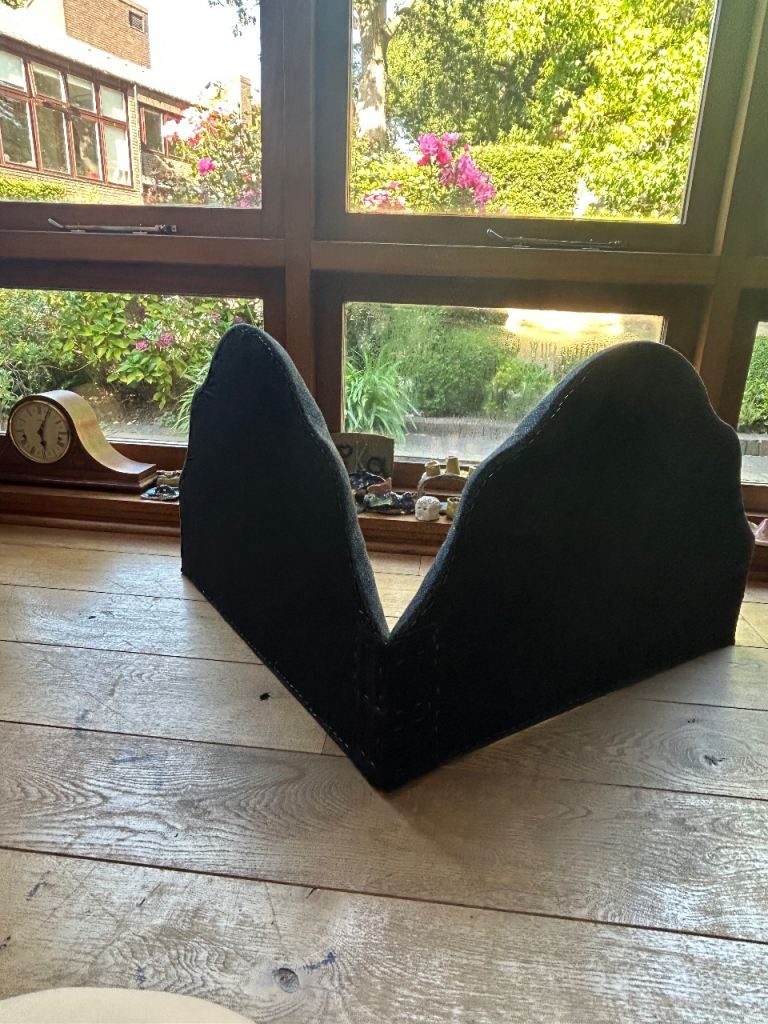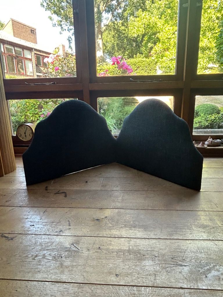 This corner nook is great for making a cosy seating area in any room. The fabric is a rich dark blue with a slightly rough feel. Its colour adds to the cosy look, making it a perfect choice for a reading nook. The fabric is deadstock heavy cotton from Designer Guild, made for furniture.