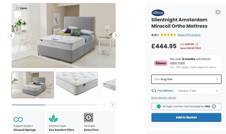 King size bed frame and Silentnight Eco Comfort Miracoil Ortho mattress for sale together.