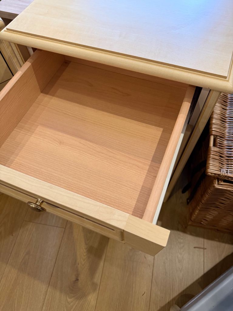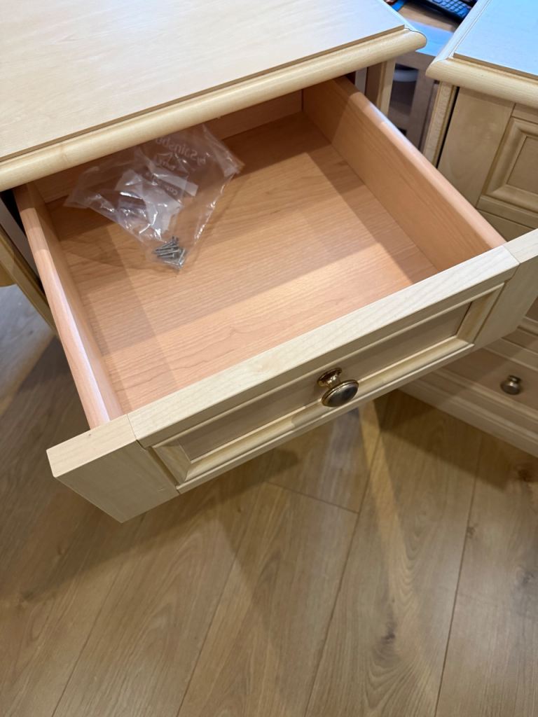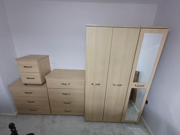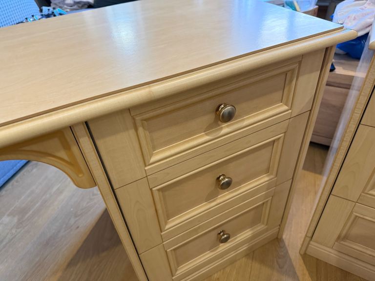 Made by Schreiber the units are solid and well made. The dressing table can be broken down for easy transportation. Available for collection.
