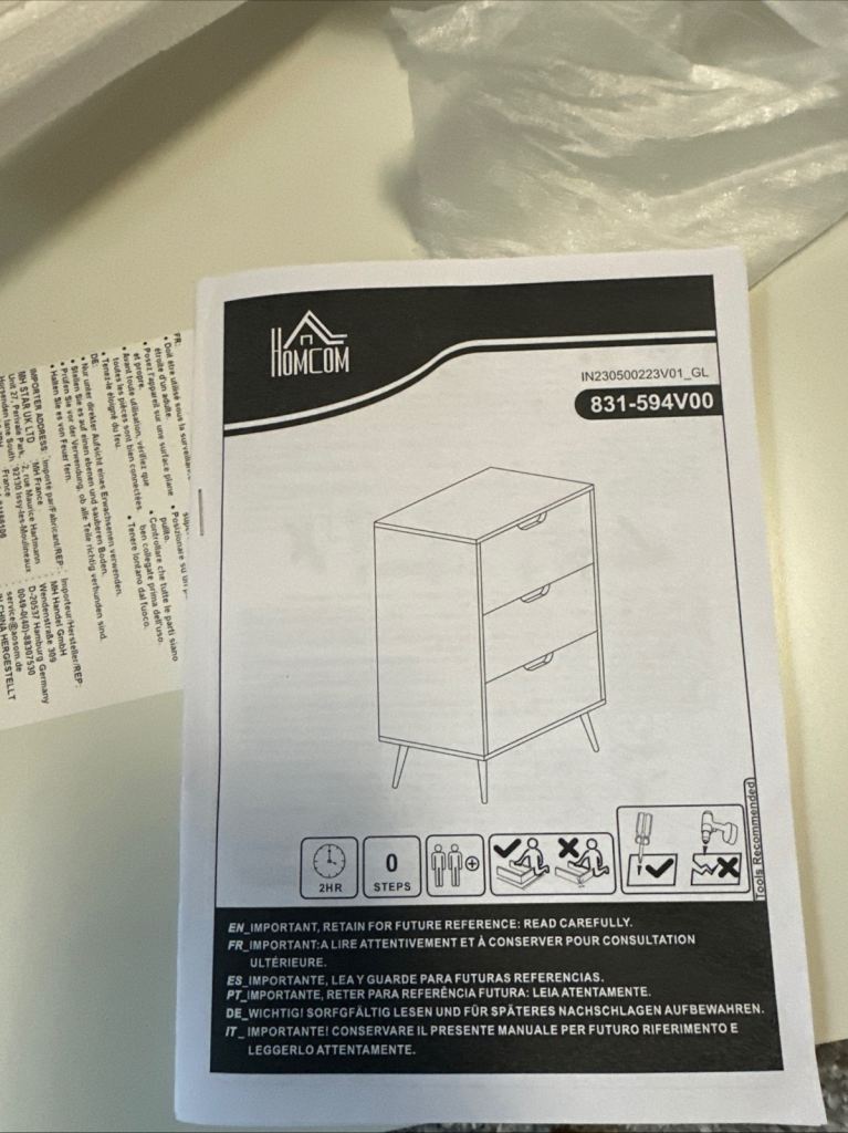 HOMCOM Bedside Table, Bedside Cabinet with 3 Drawers,