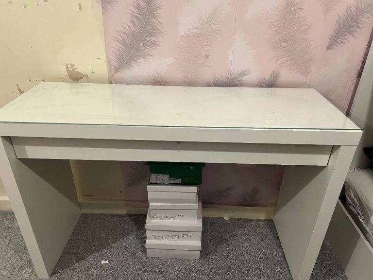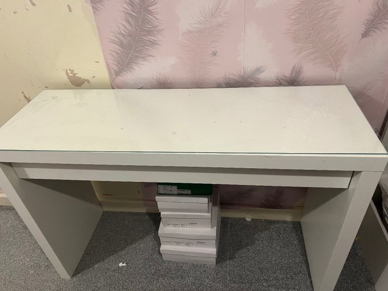 IKEA white dressing table in good, solid condition. Modern, simple design with a spacious tabletop – ideal for bedroom, dressing area, or even as a desk.