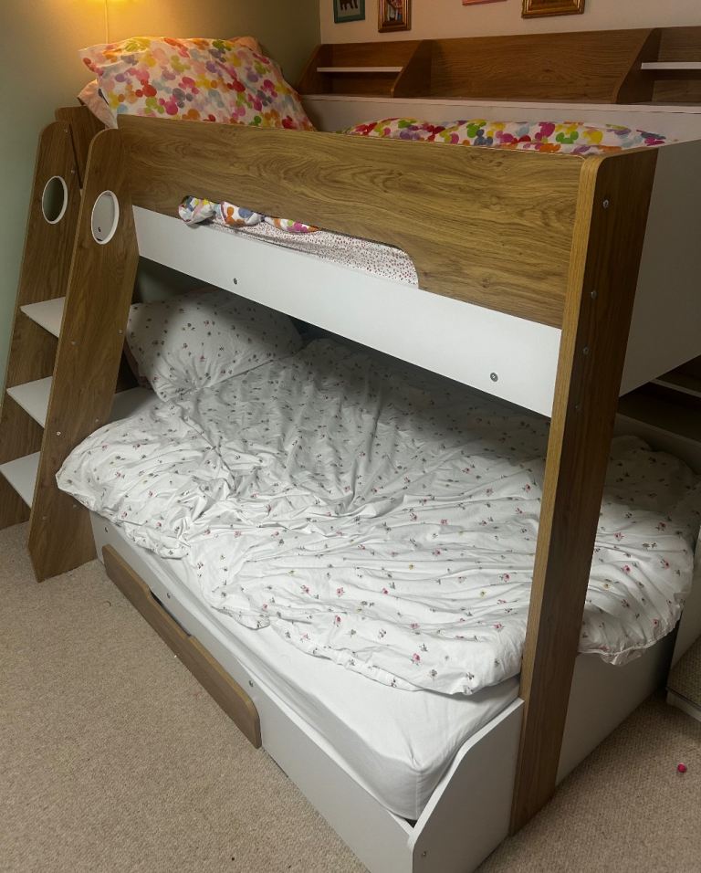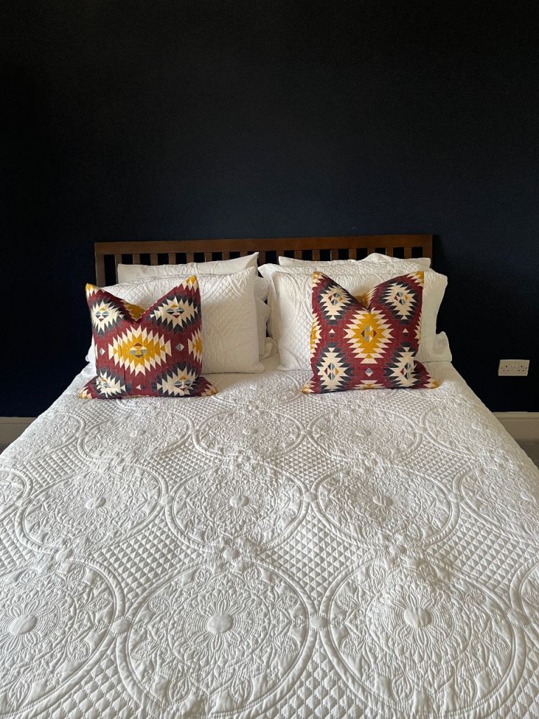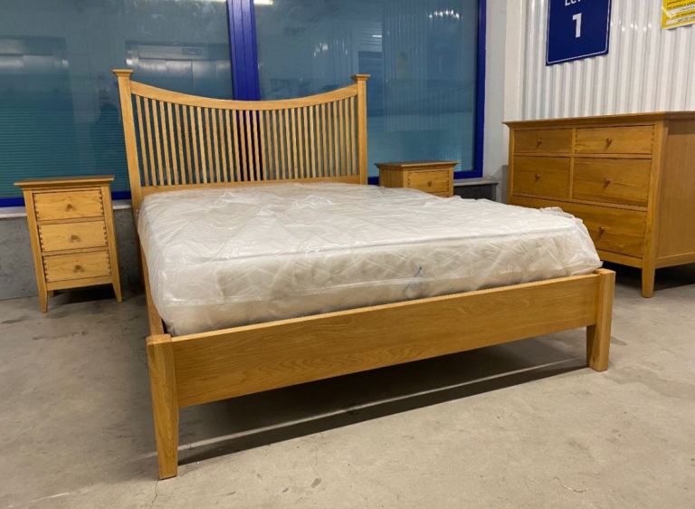 King size bed frame from M&S - grey colour, two matching bedside tables if wanted. Can look at price altogether