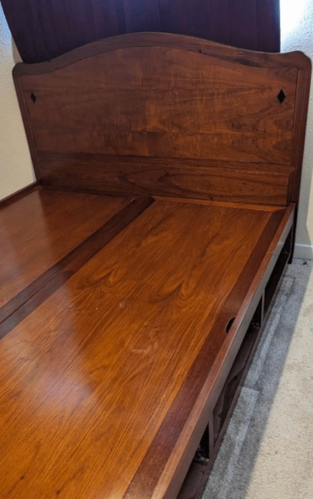 Beautiful mahogany antique bed frame, very unusual, open to offers or will possibly swap for an ottoman bedframe or TV bed base in king-size. Please see my other ads 😊 thank you