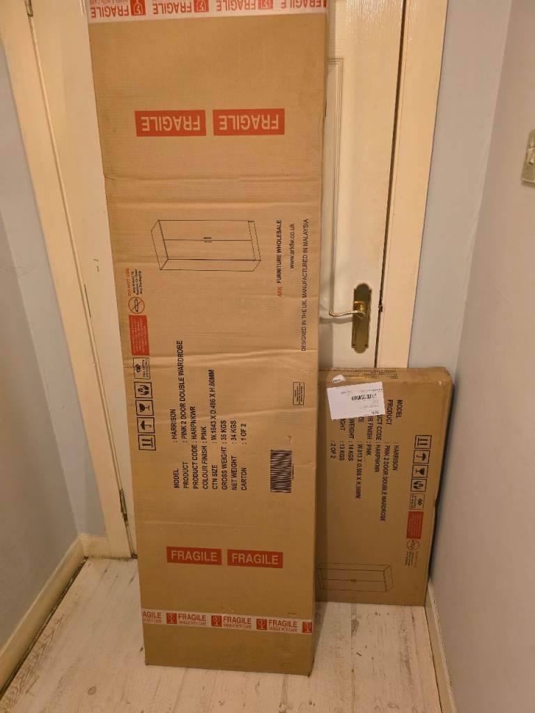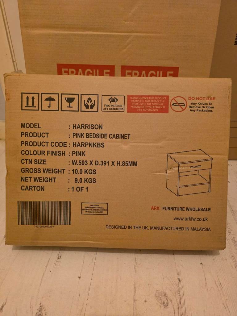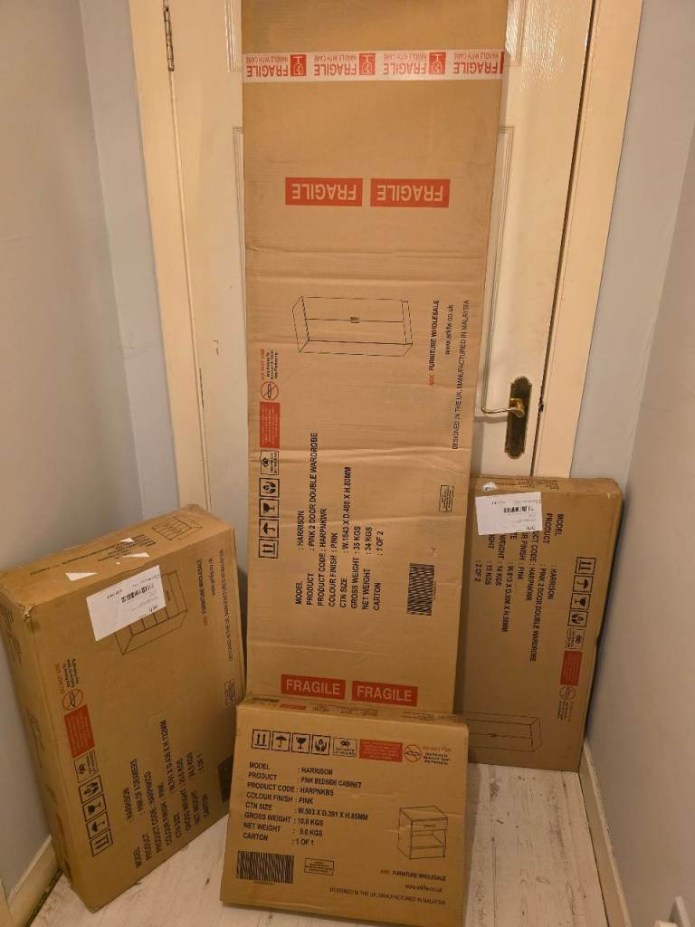 Pink Harrison Bedroom Furniture bought and unused, comes with Wardrobe, bed side table and set of 4 drawers