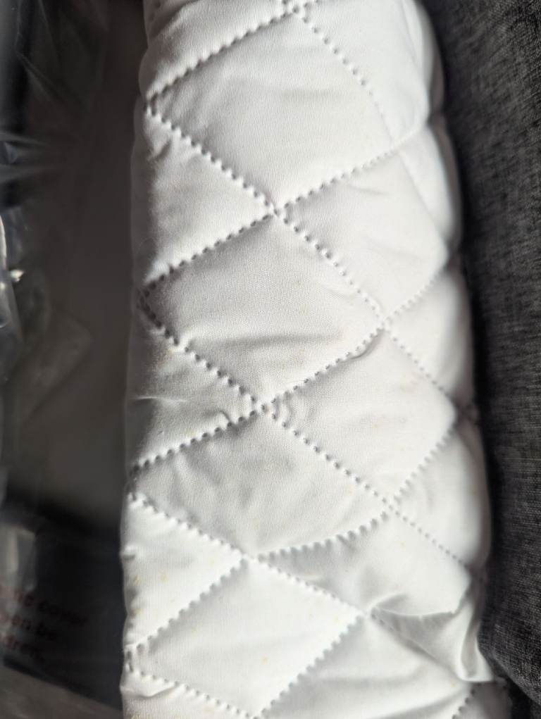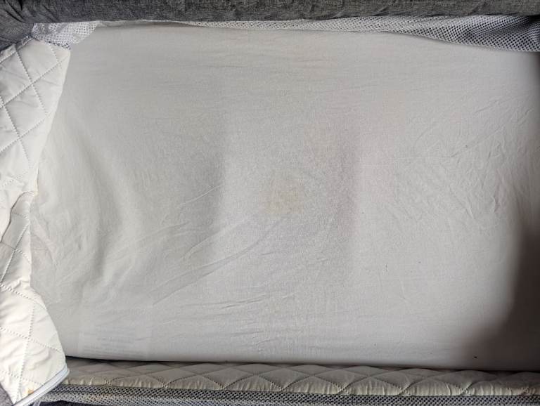 Well used. What we found convenient was one side comes down so it can be placed near the bed and makes it easy to pick up our little one from bed. Has been in storage well packed since last few years.