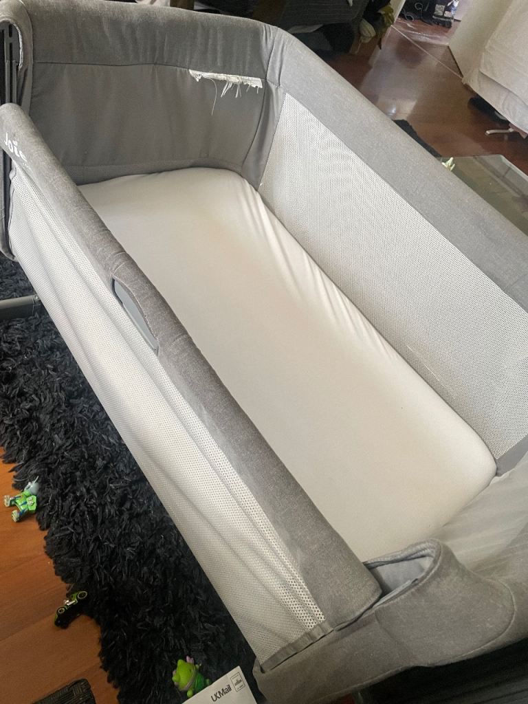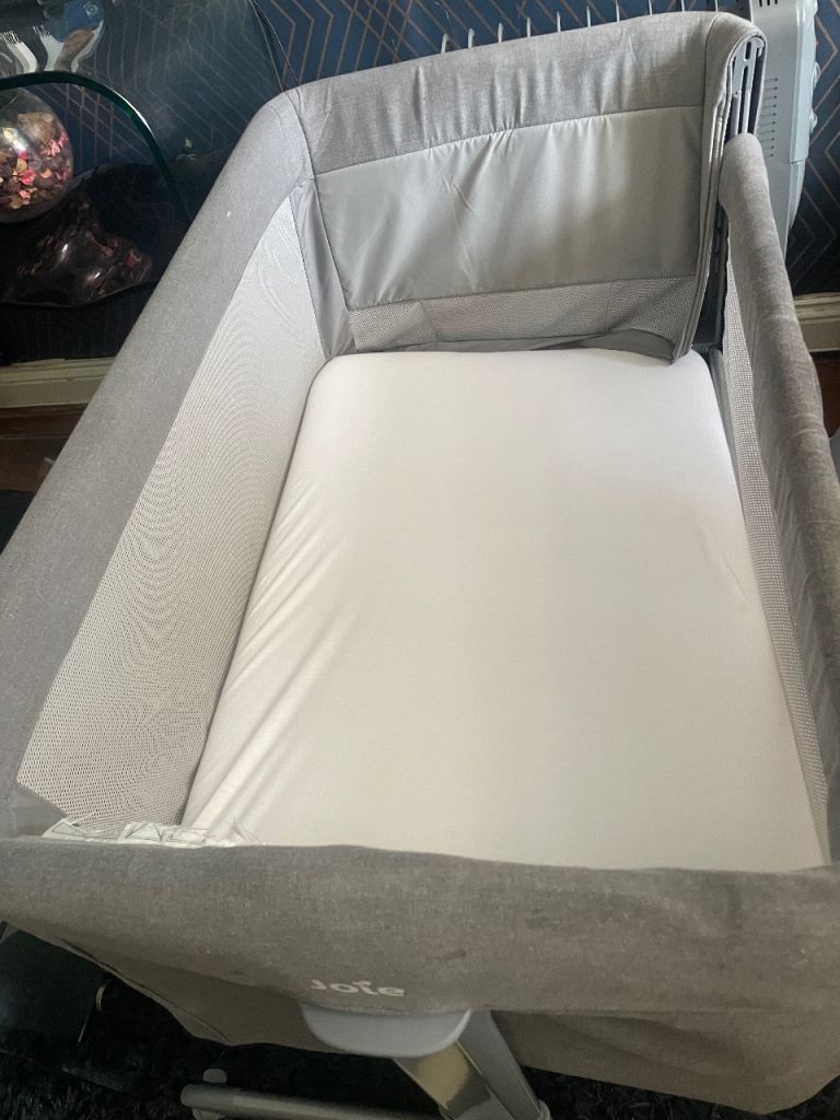 Joie Roomie Glide bedside crib in grey, perfect for keeping your little one close.