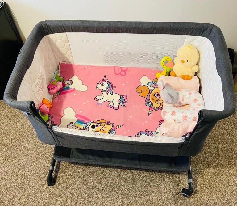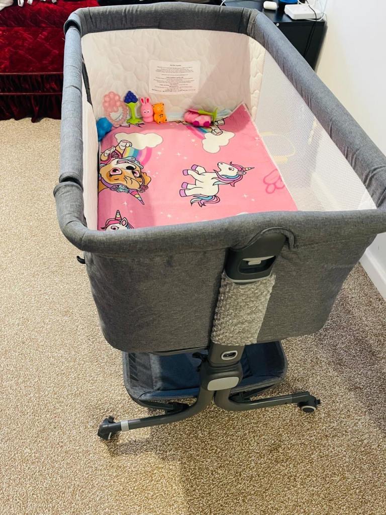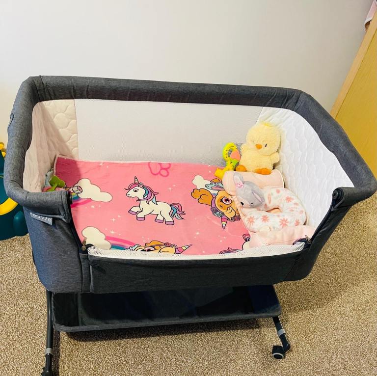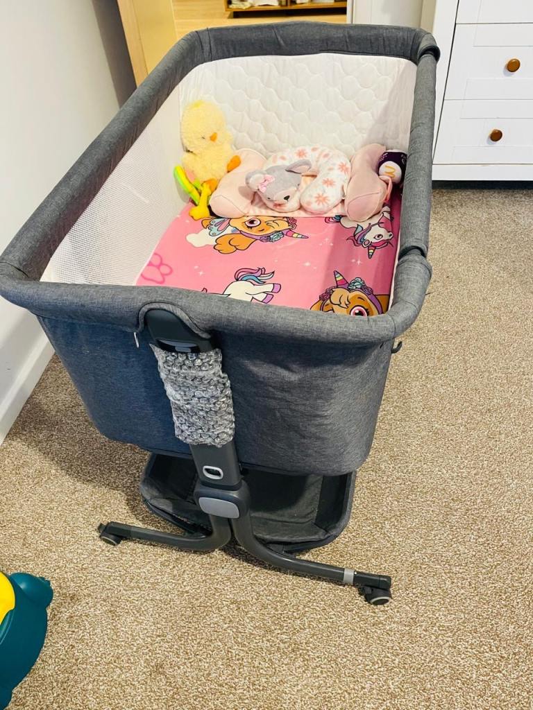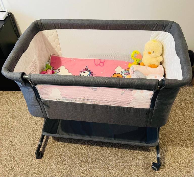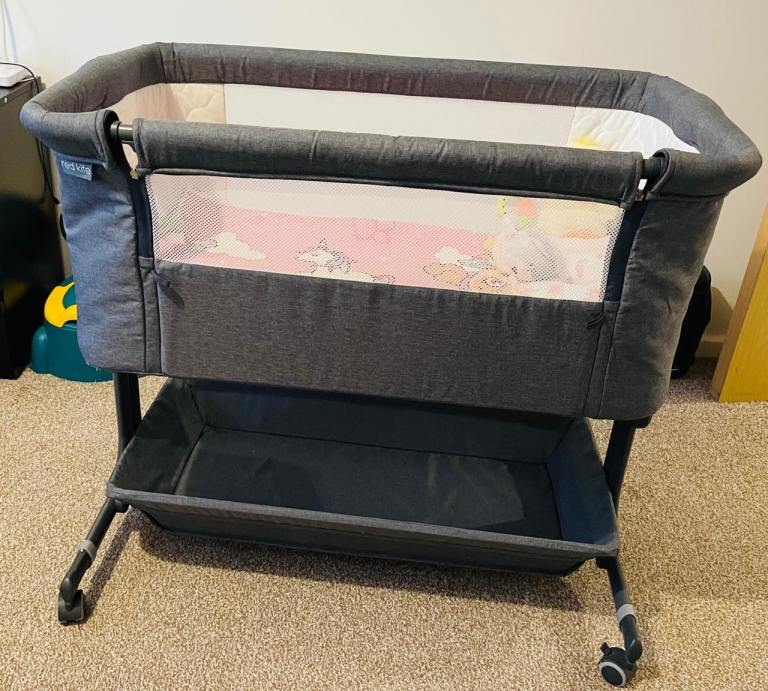 Posting for 12+ yearsRed Kite Cozysleep Grey Bedside Crib with Mattress and Bag