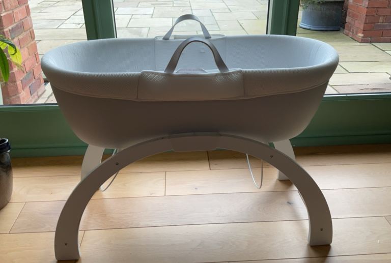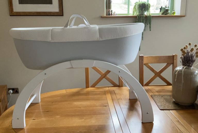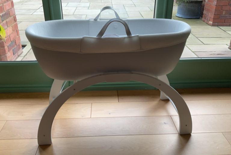 Posting for 14+ yearsShnuggle Dreami Moses Basket Pod Crib and Curve Rocking Stand Adjustable Height