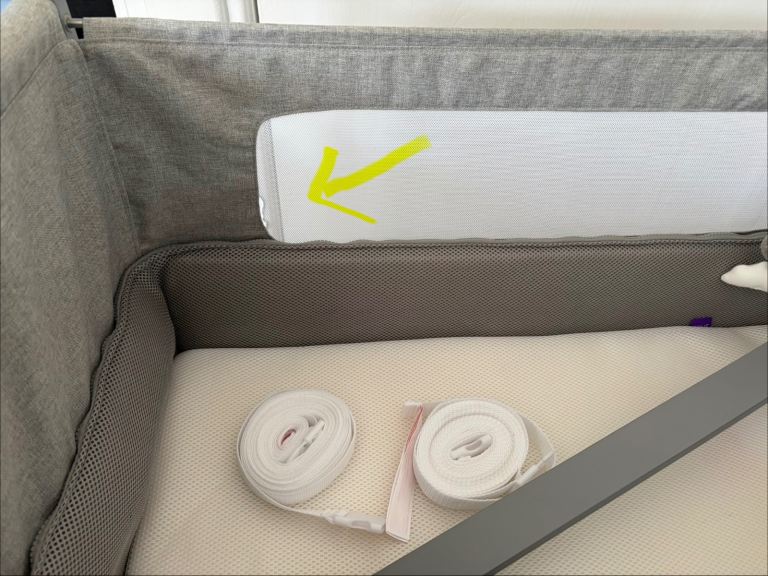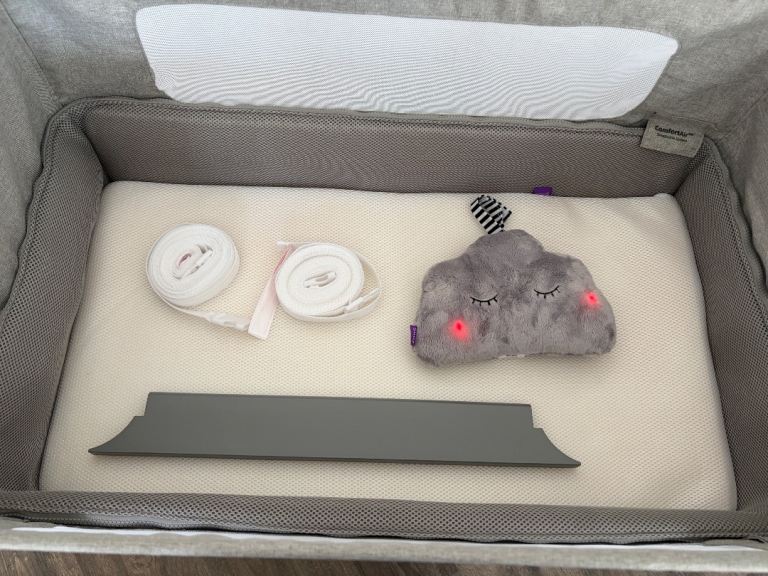 - Bar to gently tilt crib to soothe colic, reflux or congestion