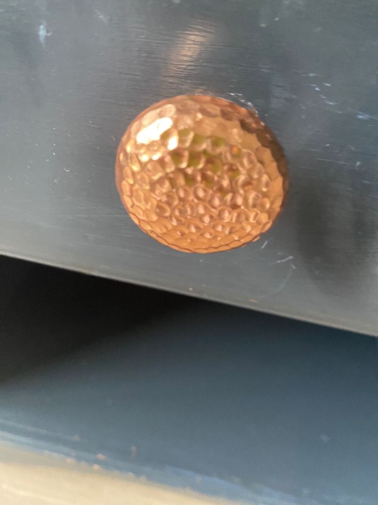 Needs a rub down and repaint but includes the lovely copper handles
