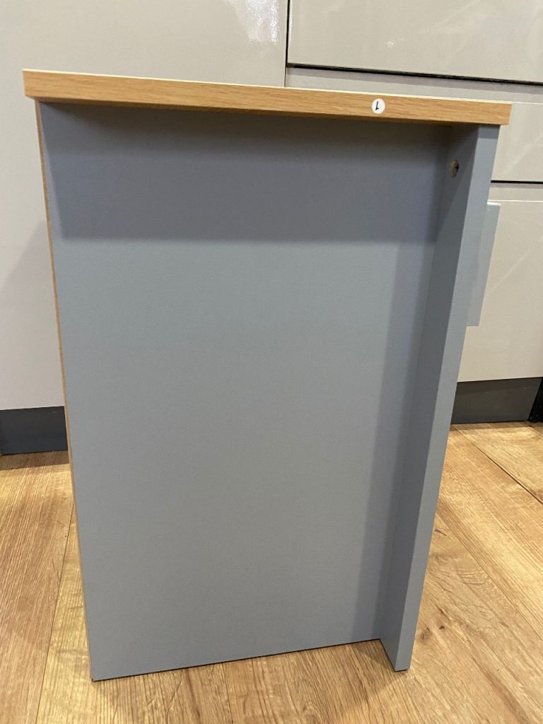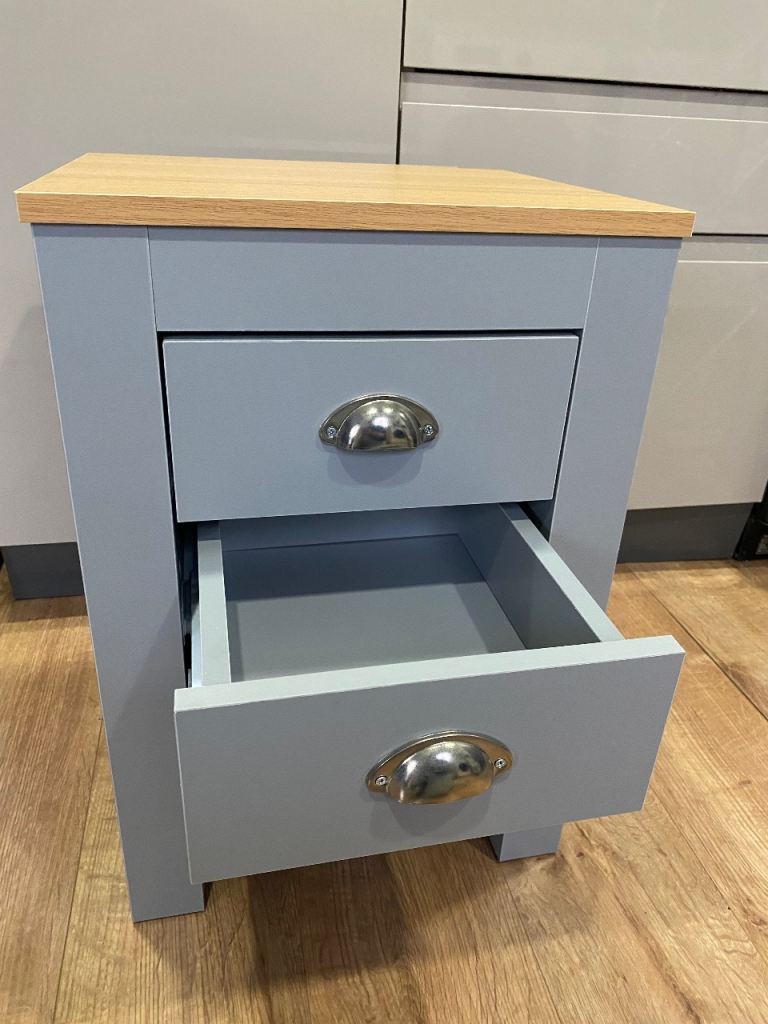 2x matching bedside tables in grey with oak top. In excellent condition, have been in a cupboard for best part of a year and have hardly been used.