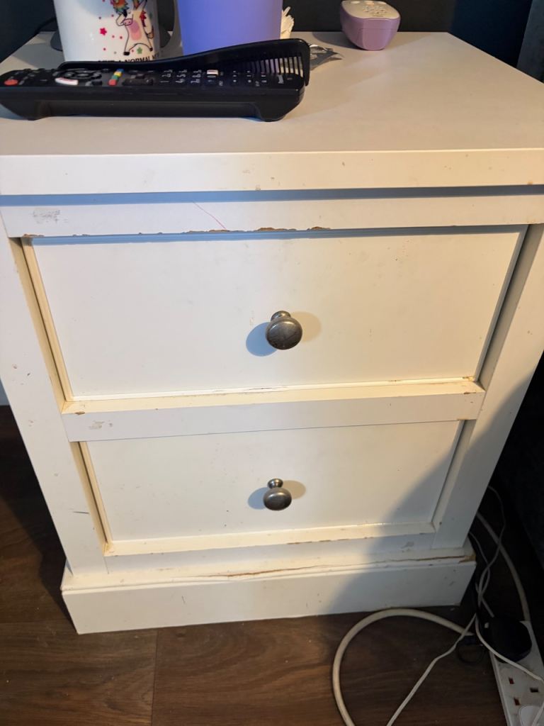 Bed side tables in good used condition. Heavy and solid! Upcycle project maybe!