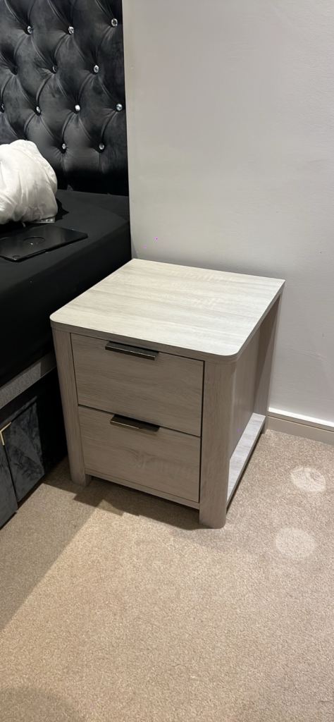 2 bed side drawers. Good quality light wood.