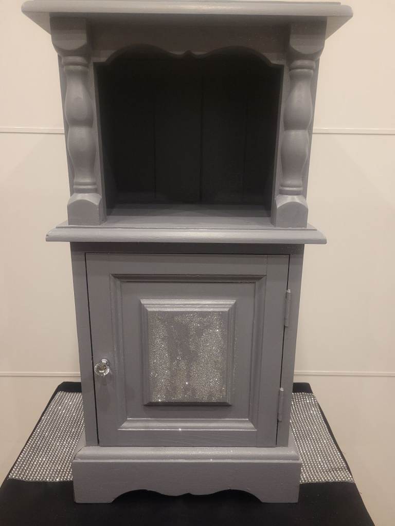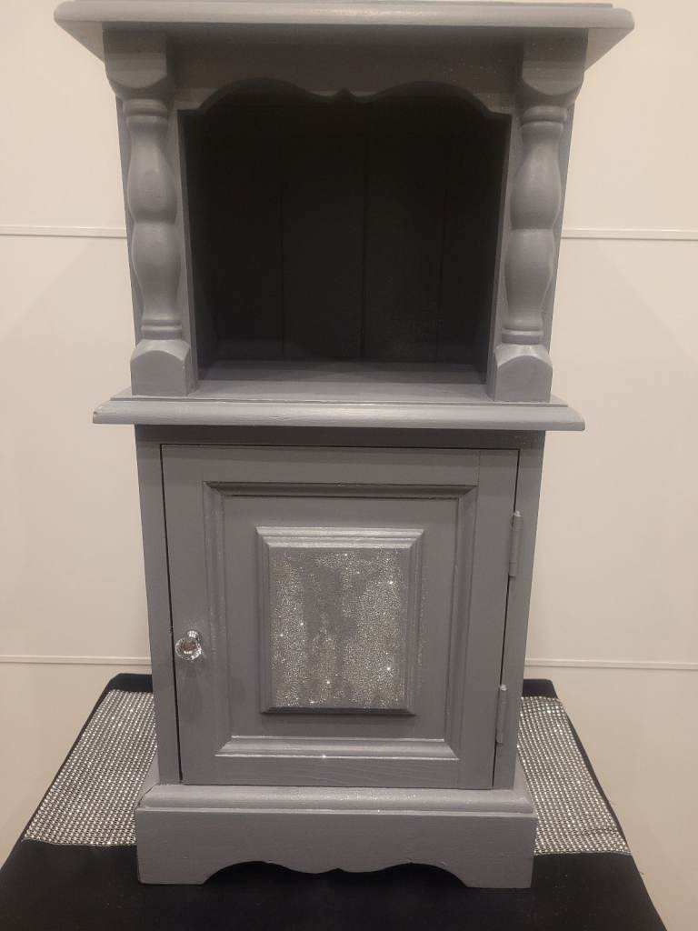 Bedside Cabinet - Grey Silver Glitz