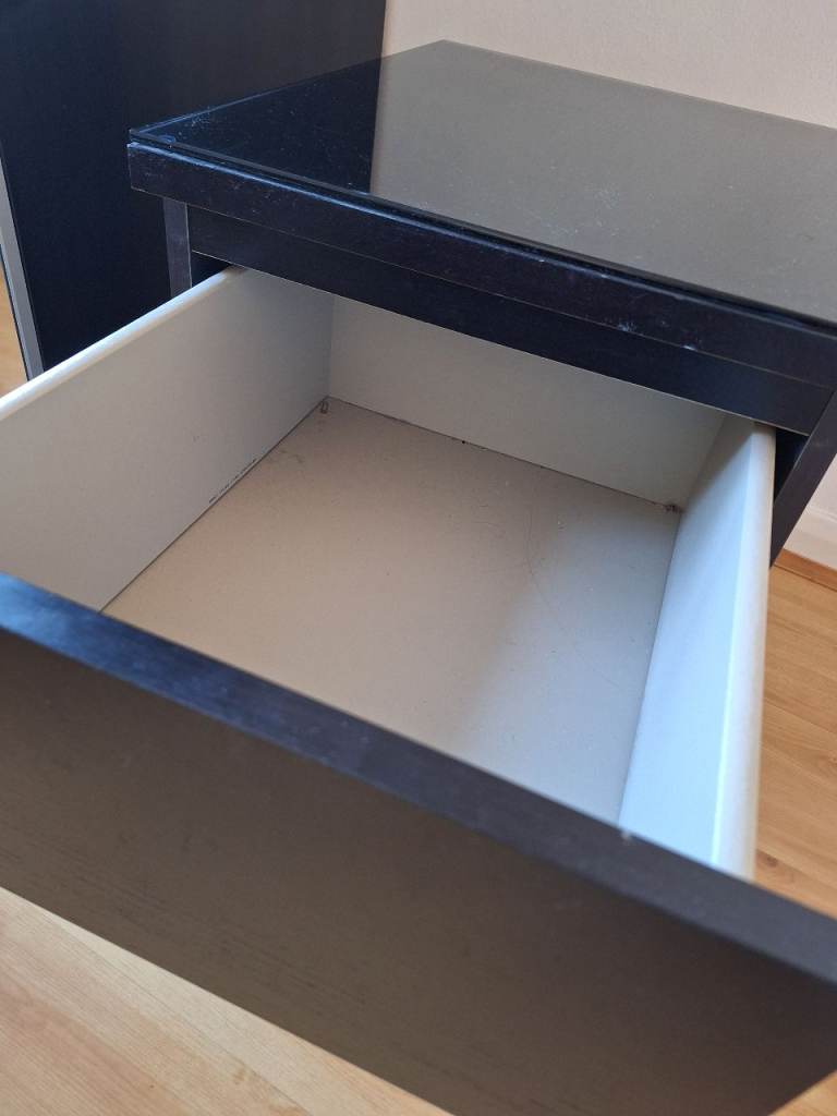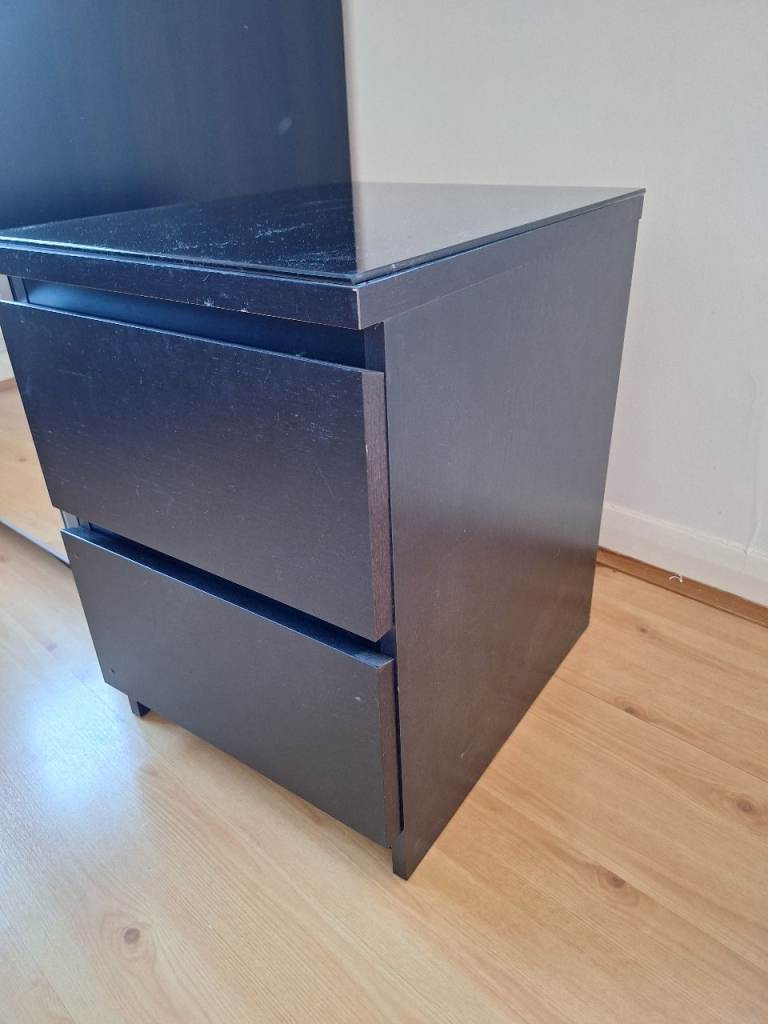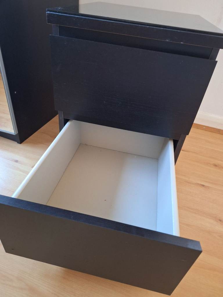 Black, 2 drawer, bedside chest of drawers.