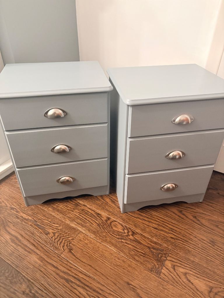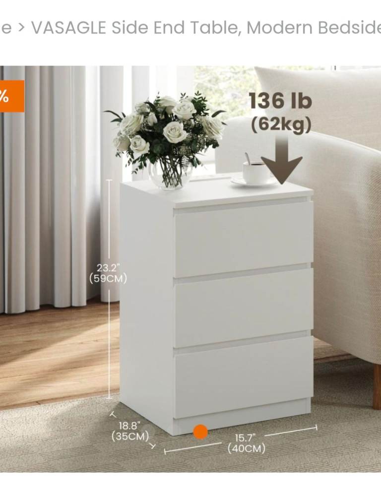 Bedside 3 drawer (2).brand new in box.ordered 2 sets by mistake.charging ports on top for 2 plugs and 2 USB ports.measurements in last picture .pick up only.picture attached is my own 2 that have just been built.