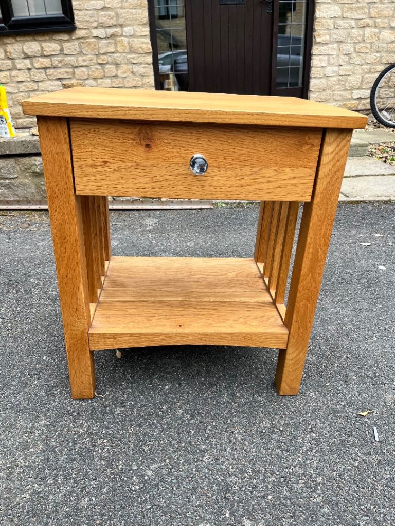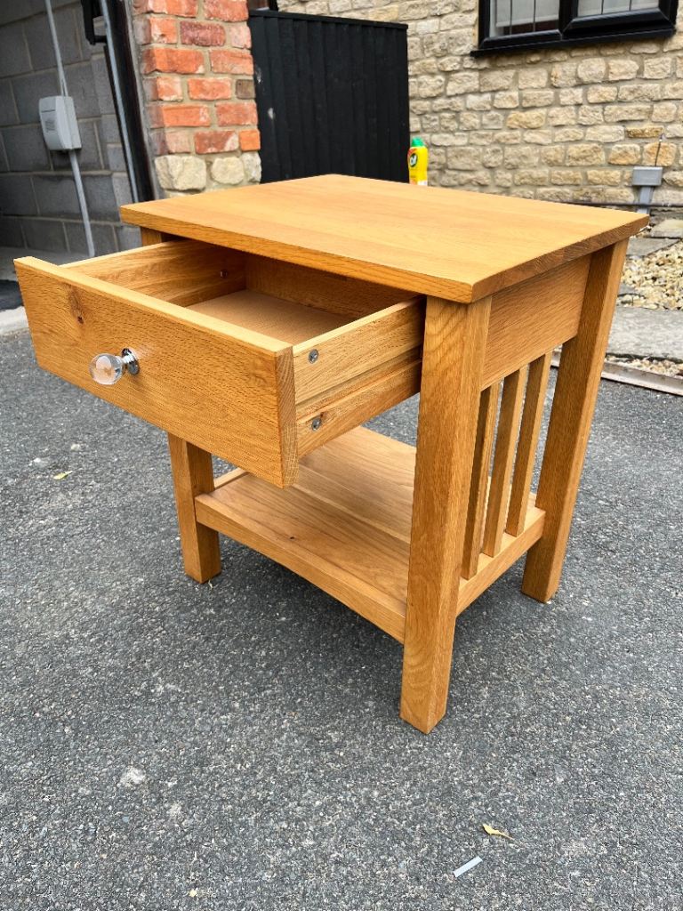Oak bedside or occasional table, with single drawer. Very good condition, satin finish. Width - 53cm, height - 60cm, depth - 41cm.