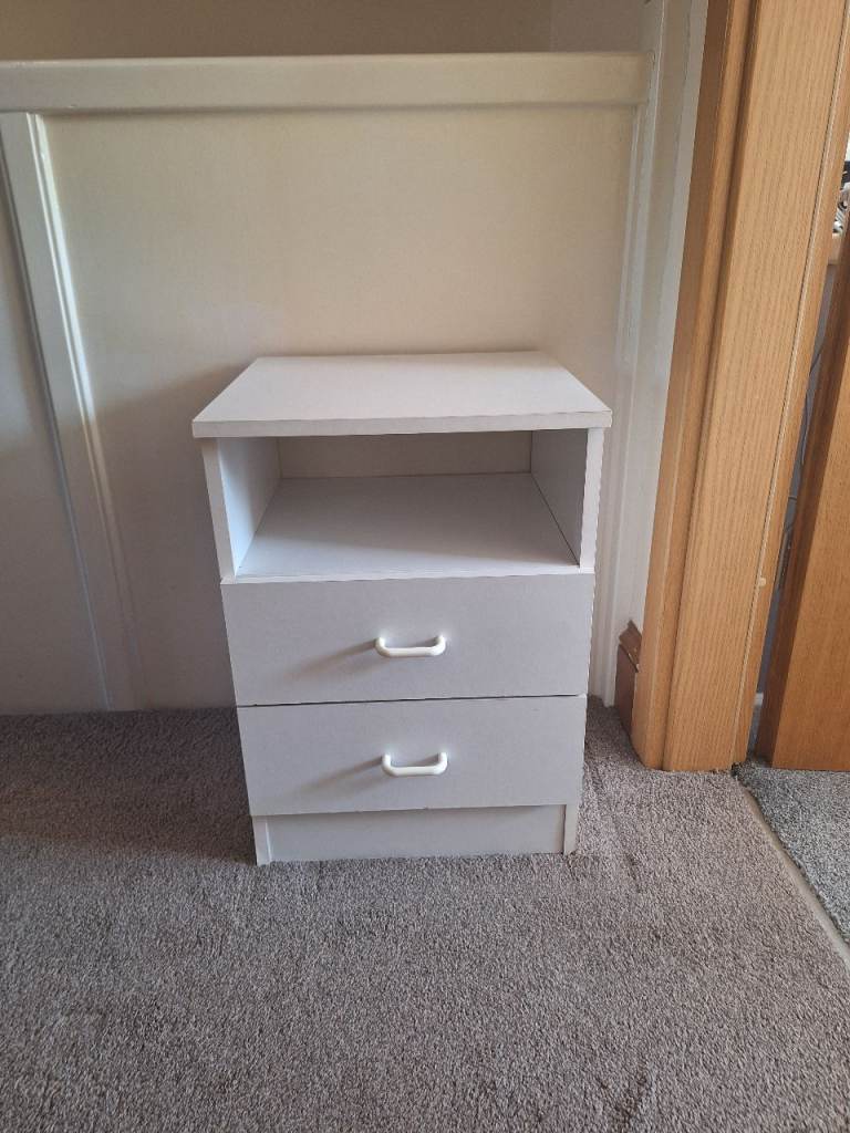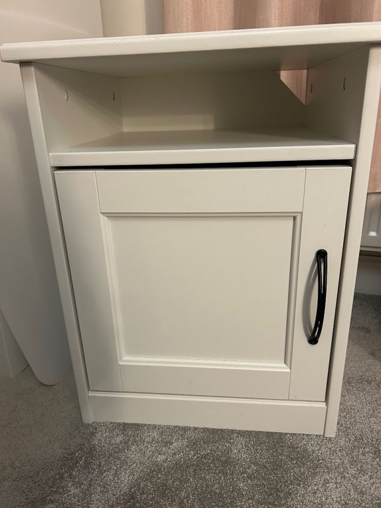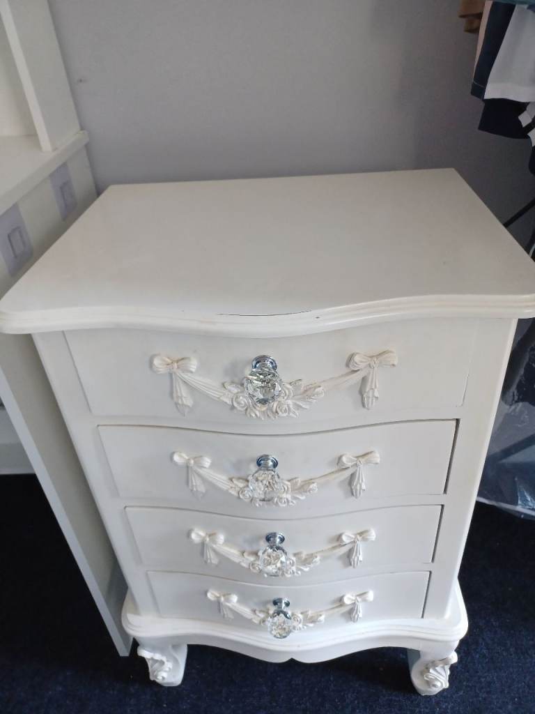 Toulouse cream/ off white bedside table. 4 lined drawers. Very solid and in good used condition