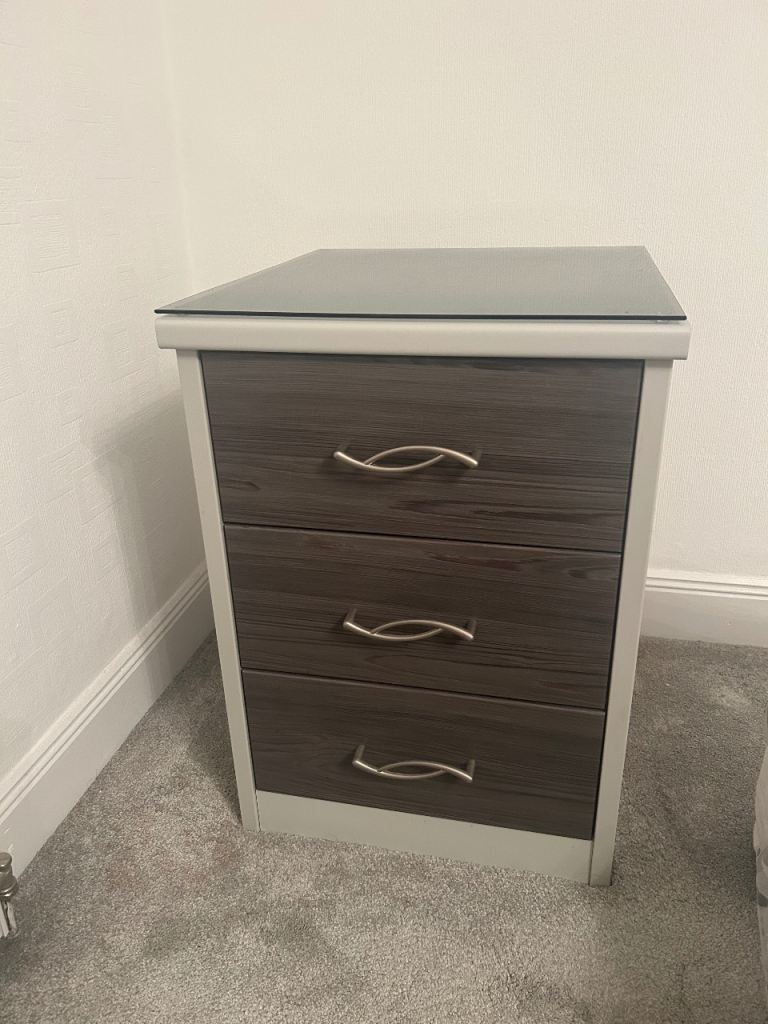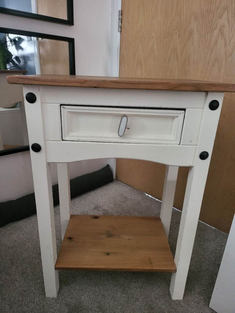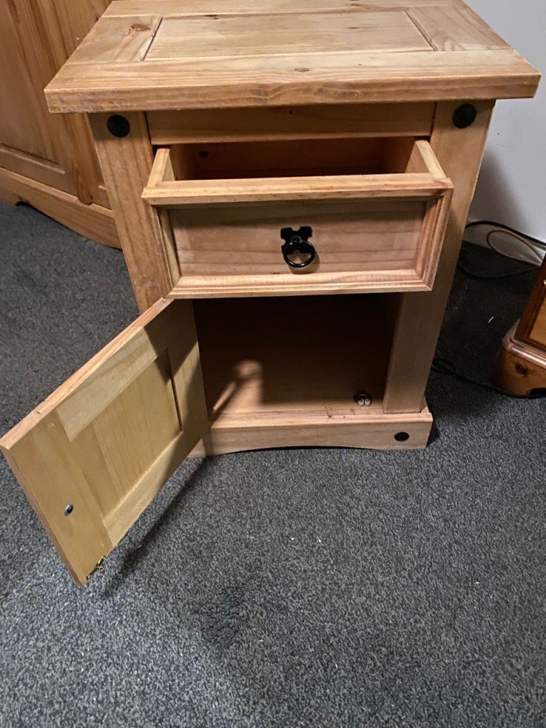 Corona bedside cabinet has 1drawer and 1 cupboard good condition size is 53cms long 68cms high 39cms deep
