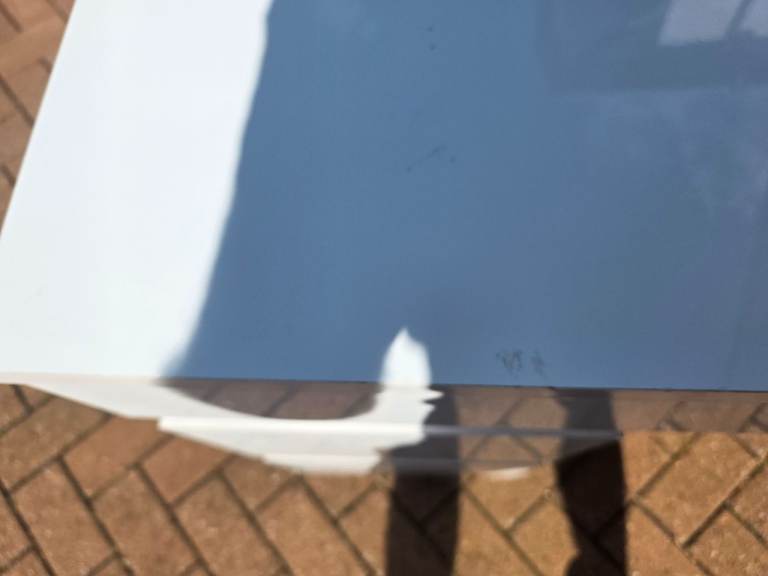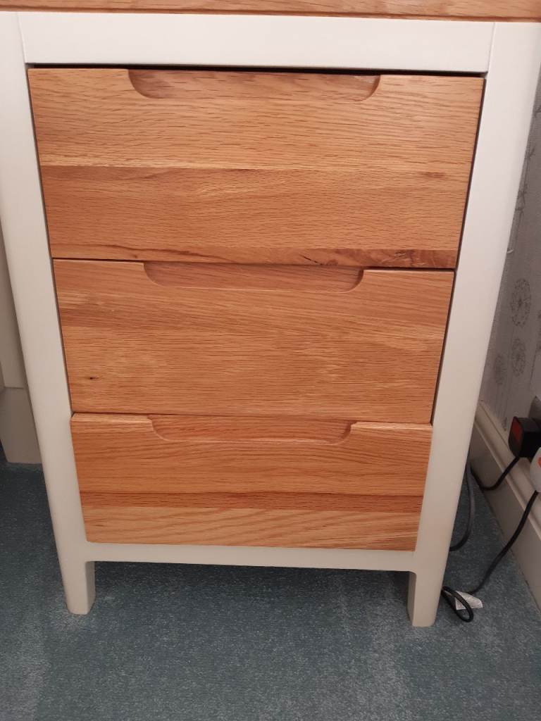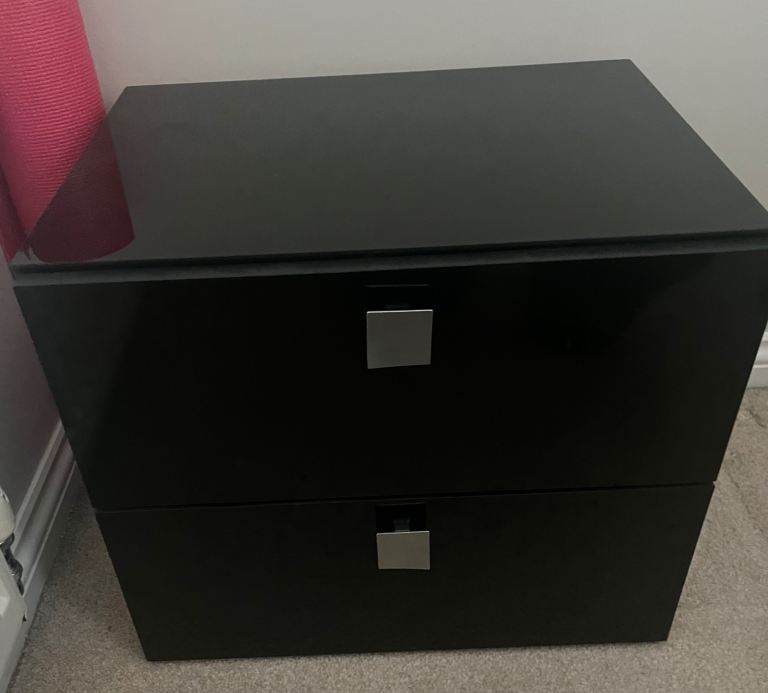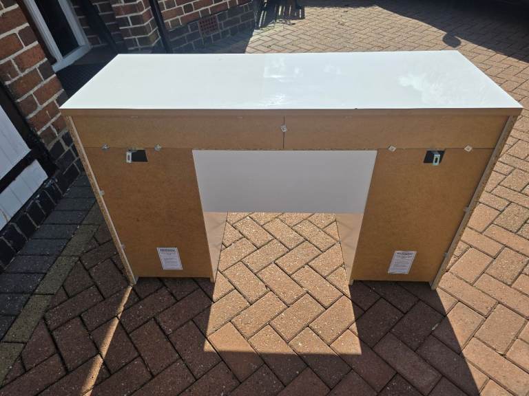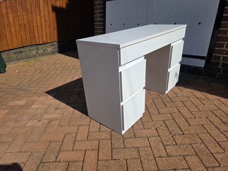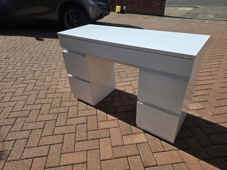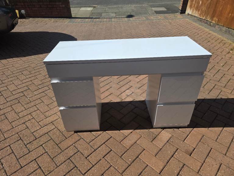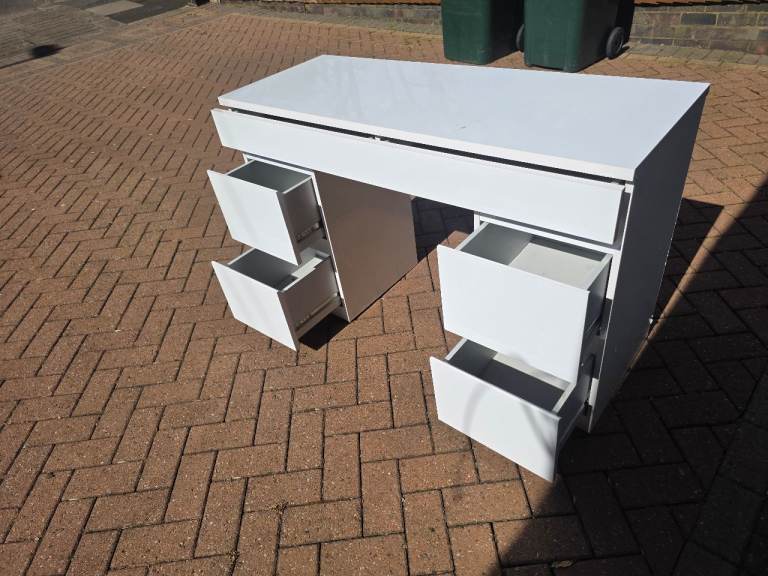 High gloss white dressing table with a double draw at the top and 4 single deep draws to the sides