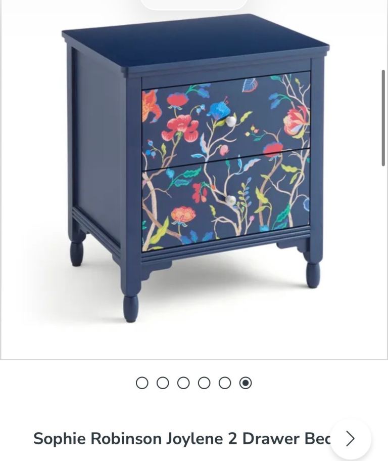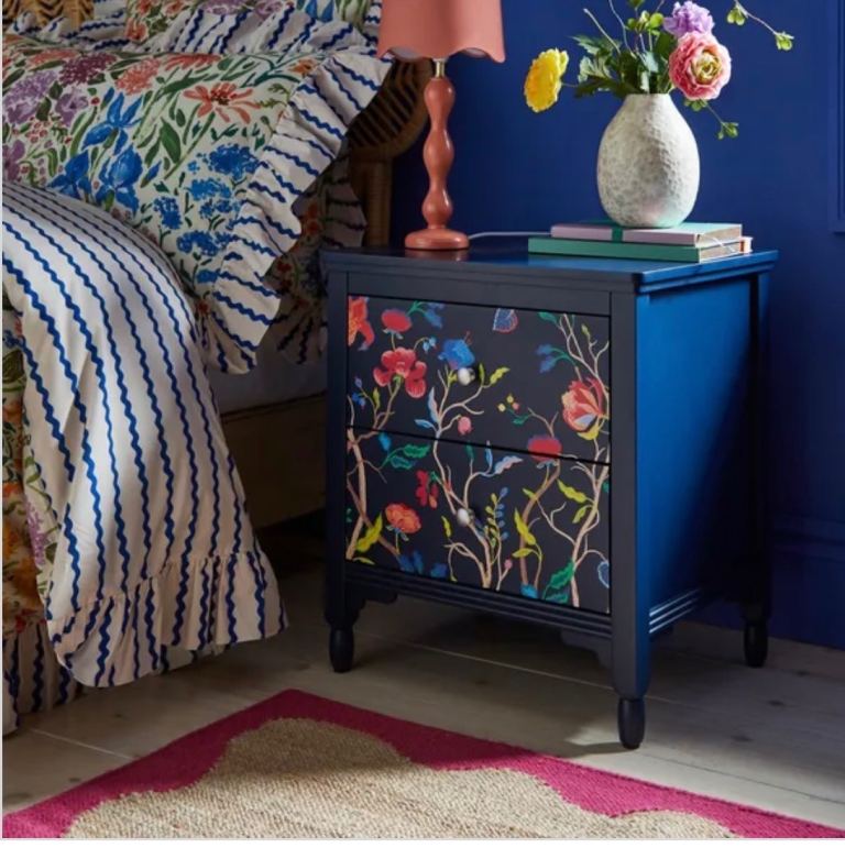Part of the exclusive Sophie Robinson collection, this bedside table showcases intricate printed detailing on the drawer fronts, lending a unique and sophisticated touch to your space. The two drawers provide ample storage for bedtime essentials such as books, glasses, or personal items, helping to keep your room clutter-free while maintaining an elegant aesthetic.