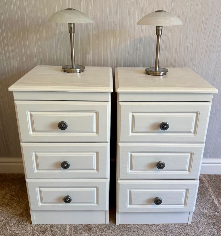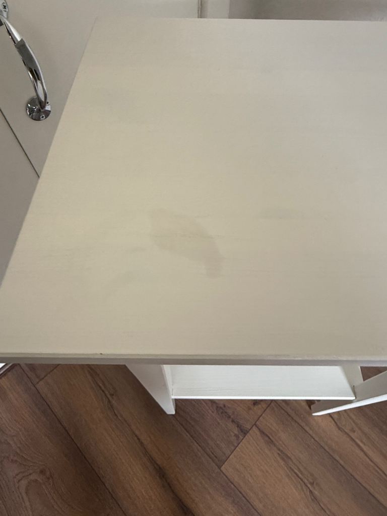 One has a small water mark as shown. The other has a bubble in the paint on top, both can be painted or covered. Other than that they are only a year old