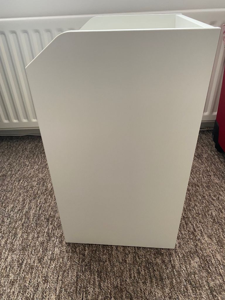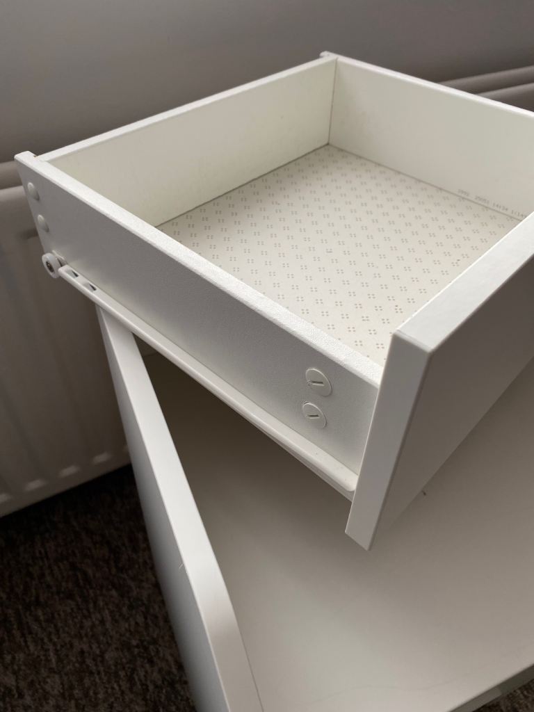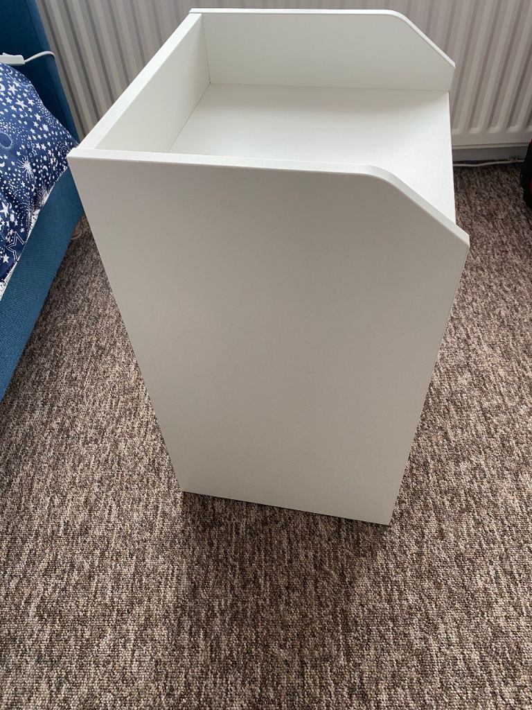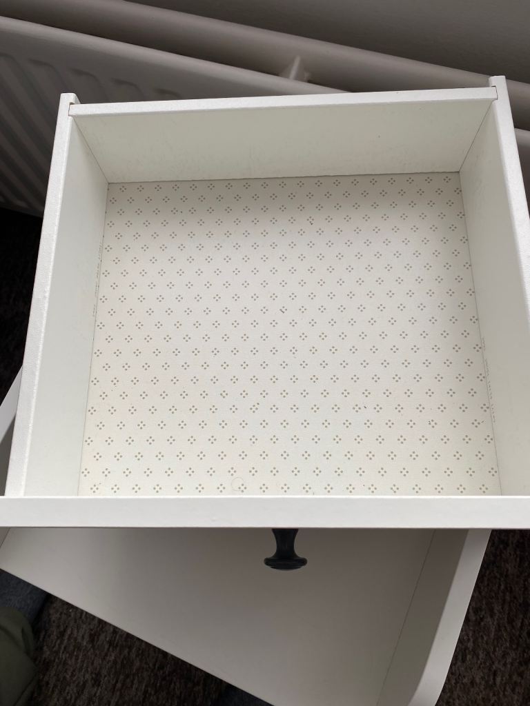 IN PERFECT AND VERY CLEAN CONDITION, OUR BEDSIDE UNIT ISN’T SUITABLE FOR OUR NEXT HOME, SO NEEDS TO BE LOVED ELSEWHERE. TOP HAS A RAISED EDGE ON 3 SIDES, VERY USEFUL IF YOU TEND TO KNOCK THINGS OVER! ONE EASY GLIDING DRAWER AND AN OPEN FRONTED STORAGE SPACE BELOW.