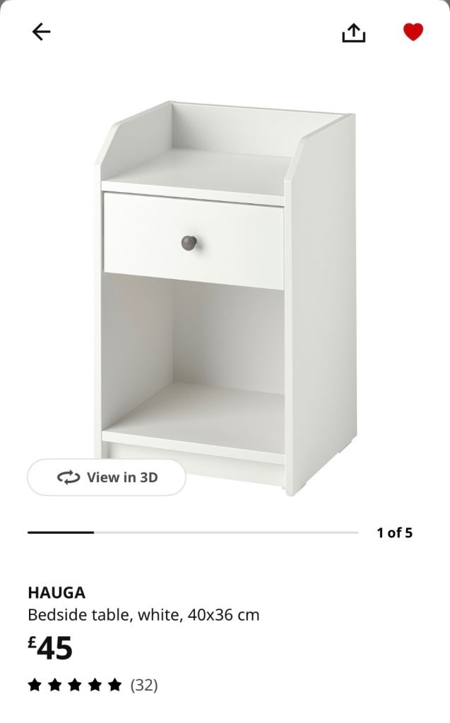 White bedside table purchased from Ikea around 2 yrs ago in good condition