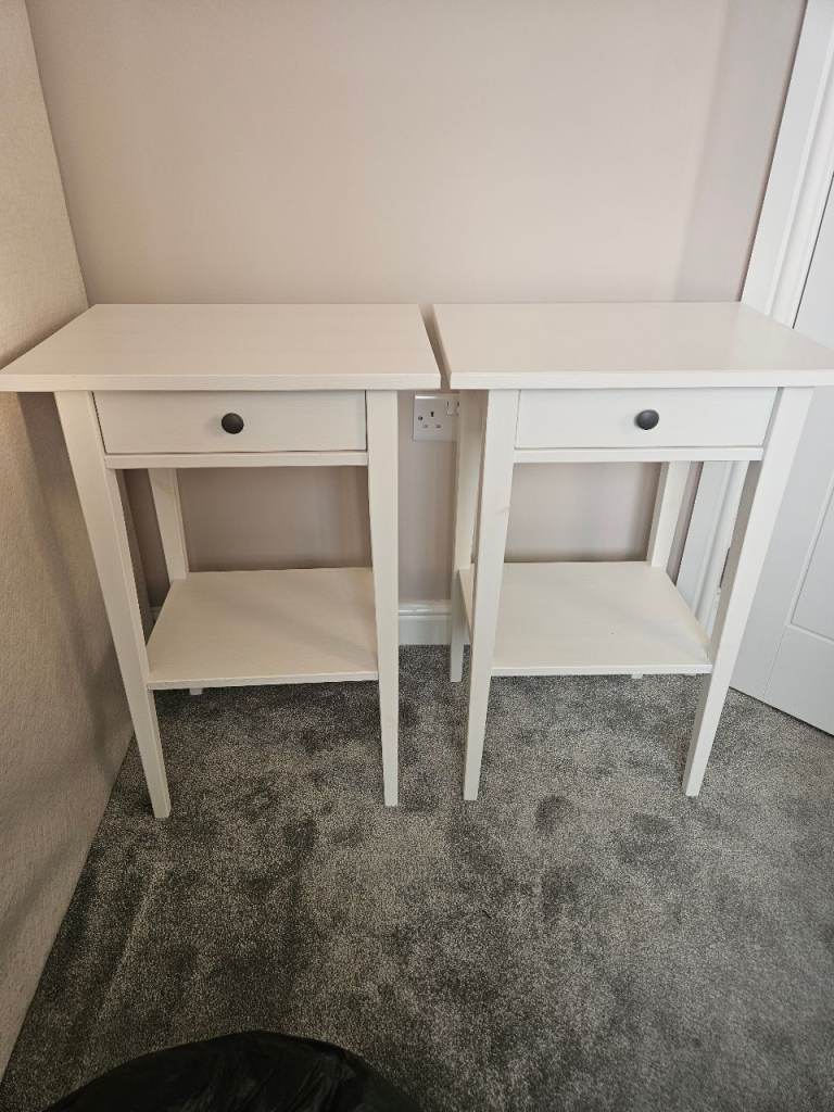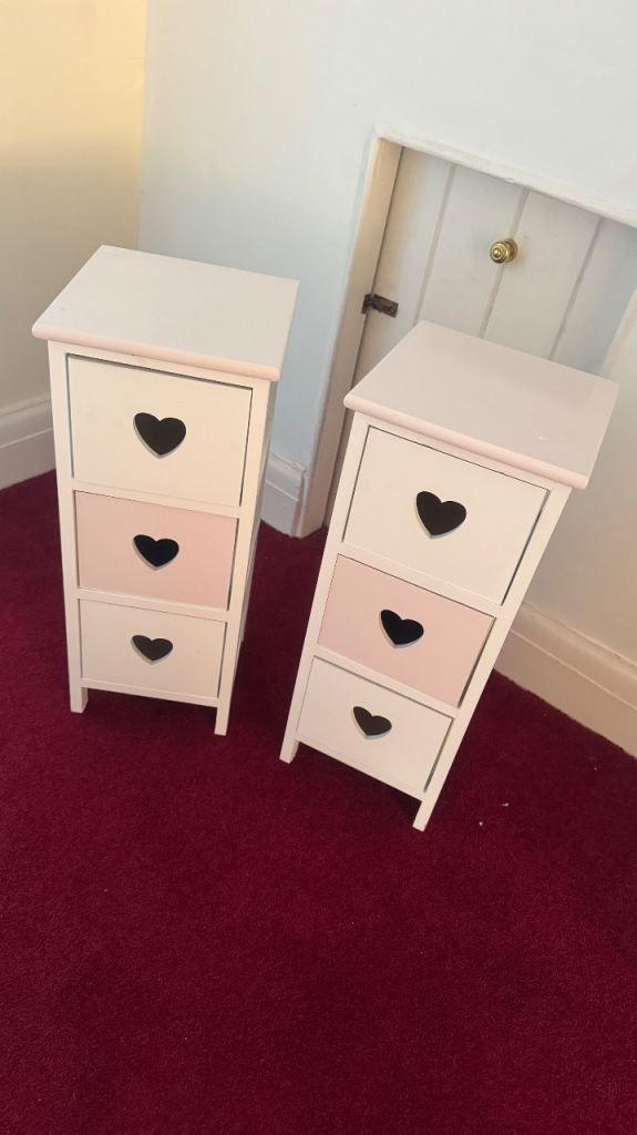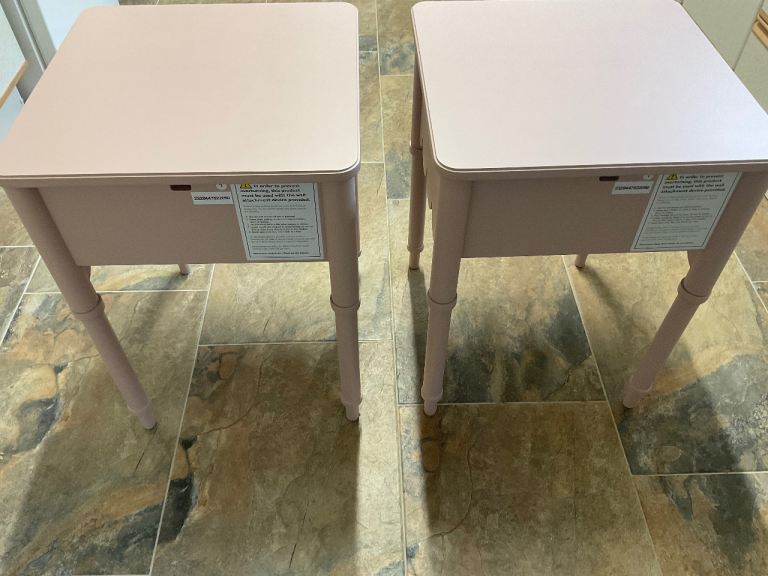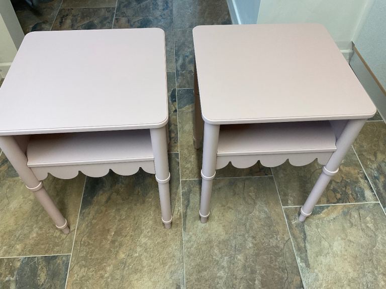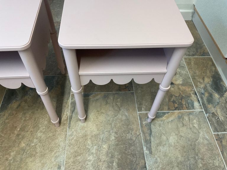 Two bedside tables from John Lewis, part of the hem collection. Dusty Pink with shelf and Scalloped edge. Immaculate condition. Pick up only and no offers thank you. £100 for the 2