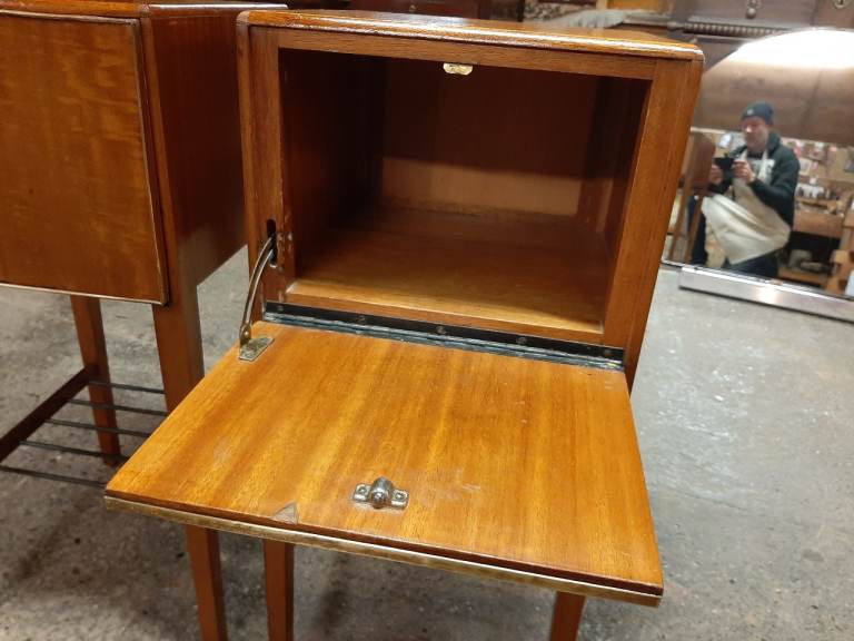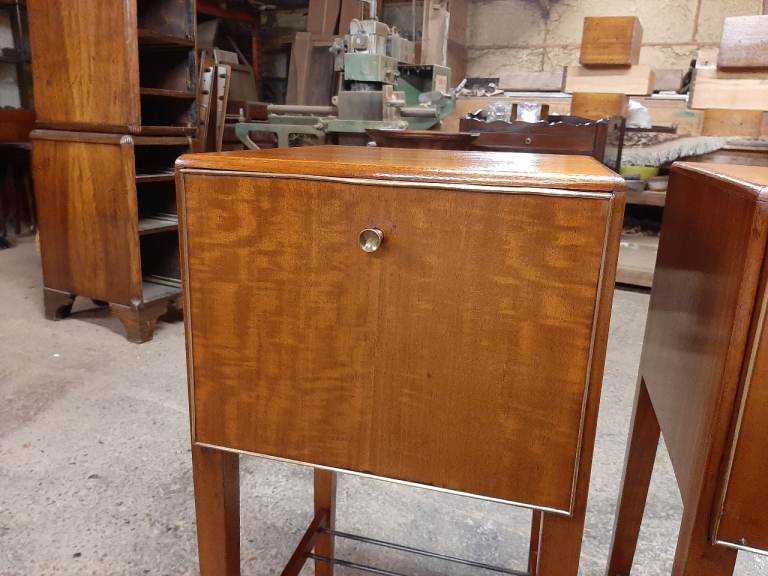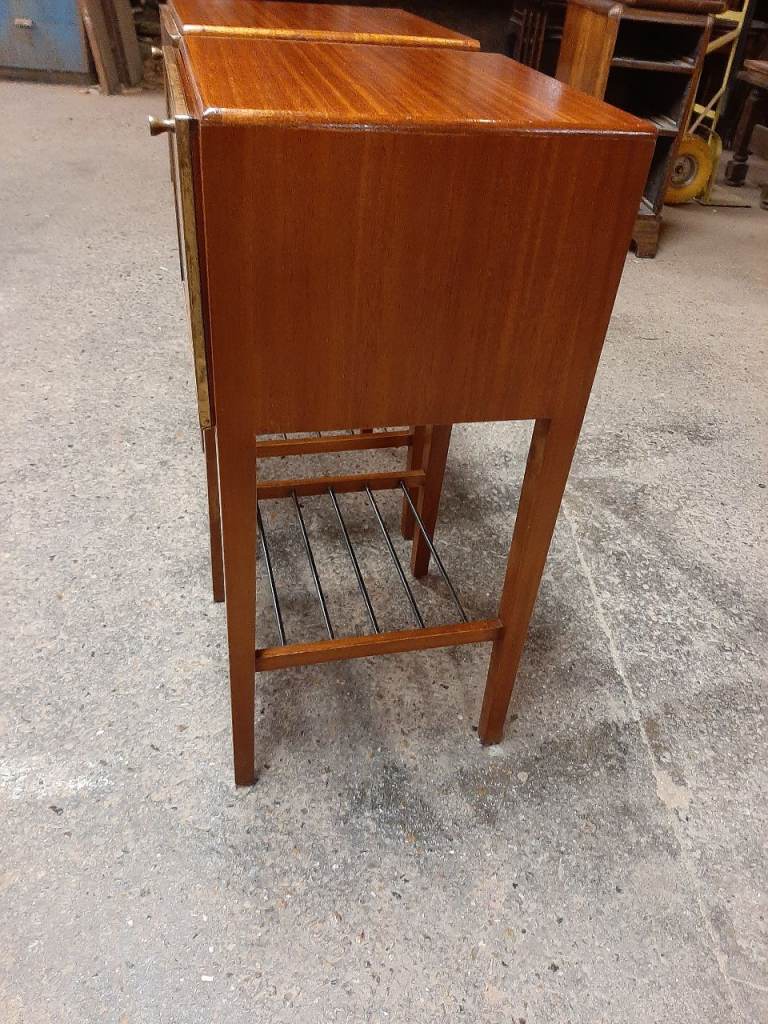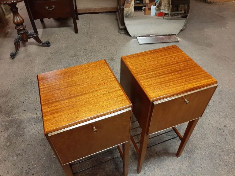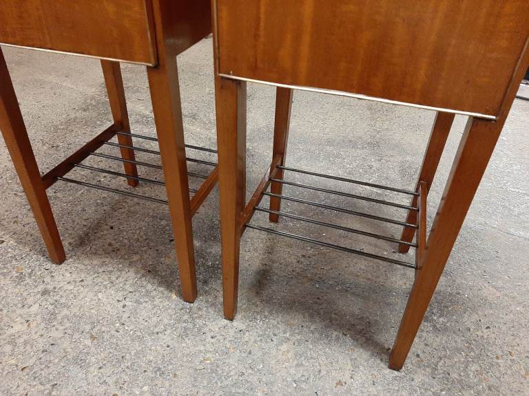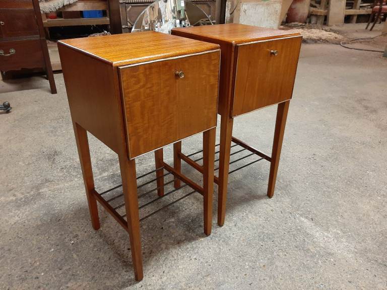Lovely pair of retro satinwood bedside cabinets in very good condition , drop down doors , not often you find a pair as nice as these , they measure 33 cm x 33 cm x 71 cm tall. Delivery can be arranged