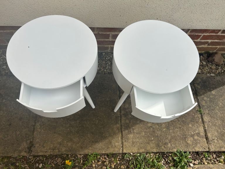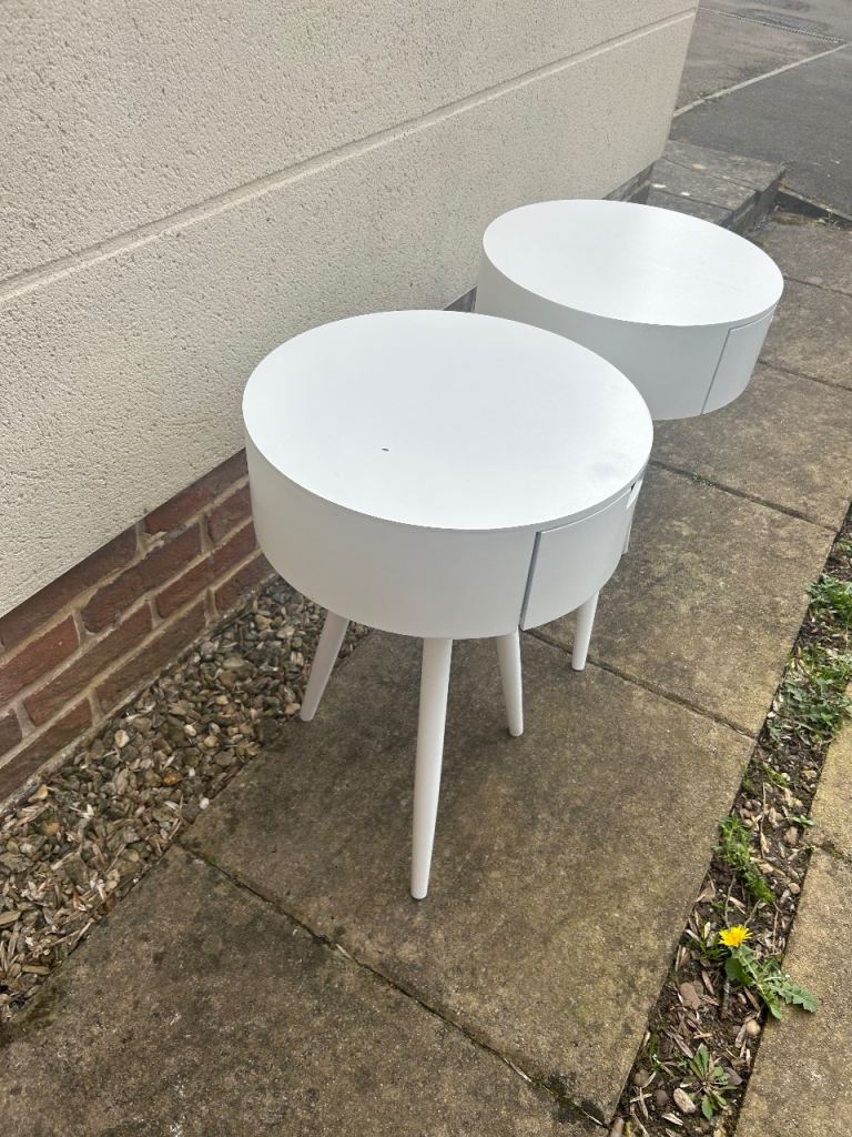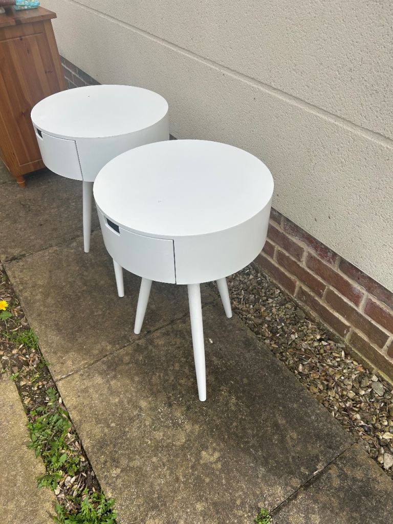 Modern bedside tables there in good sturdy condition odd wear mark to the top as shown. They are 38 cms wide 38 cms deep and 60 cms tall. We can deliver single items for an extra £5 within Newport or Cardiff. Collection can be made from Malpas Newport NP20.