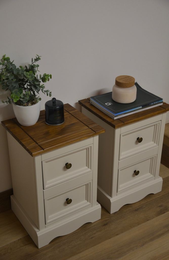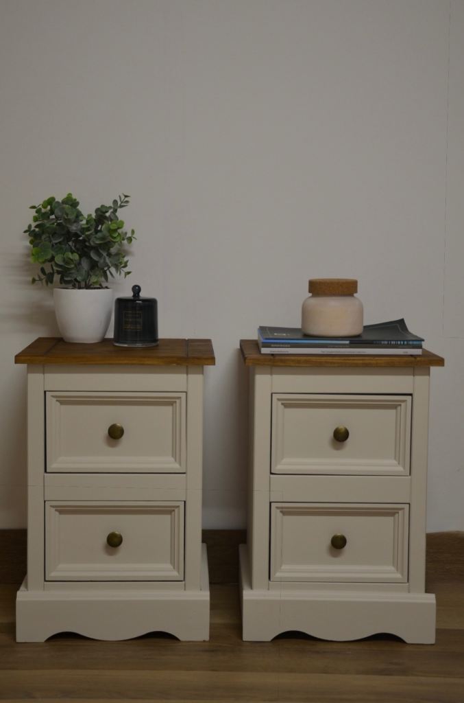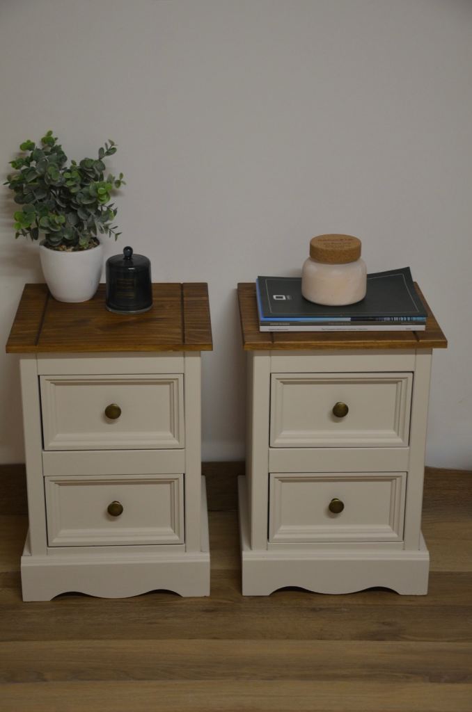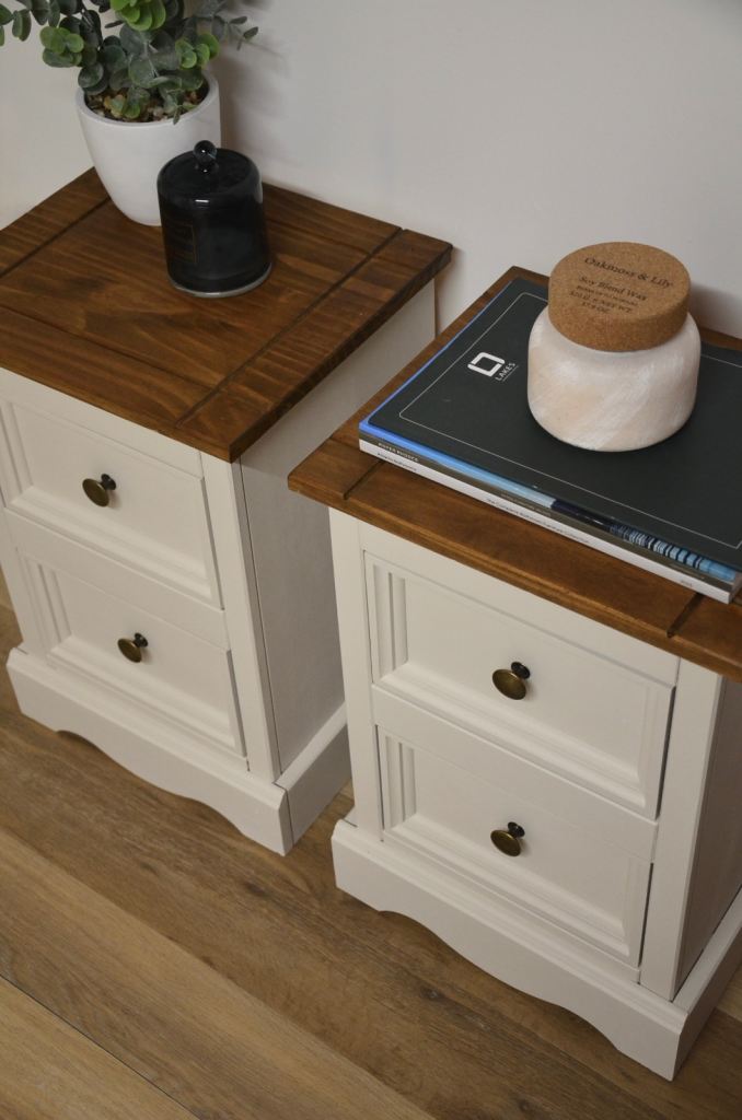 Newly refurbished/ upcycled white and wooden bedside table pair