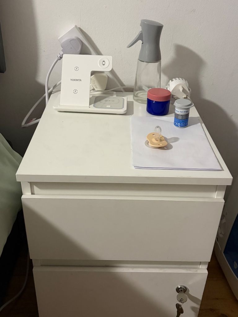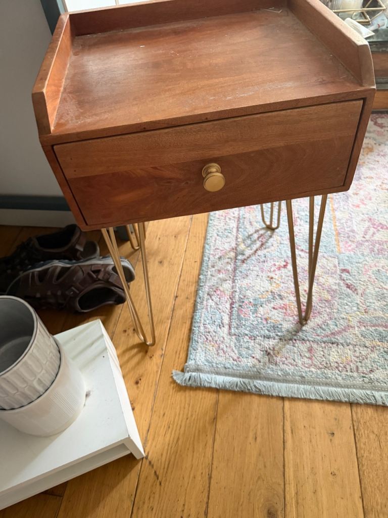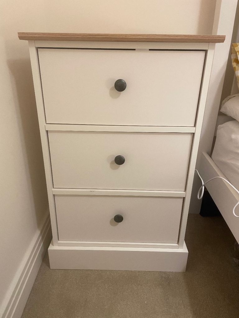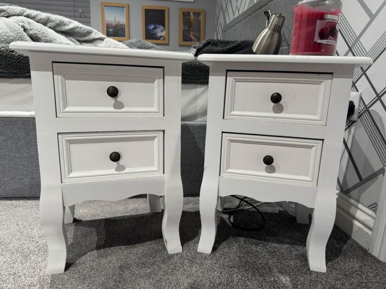 Posting for 1+ monthsNewly refurbished/ upcycled white and wooden bedside table pair