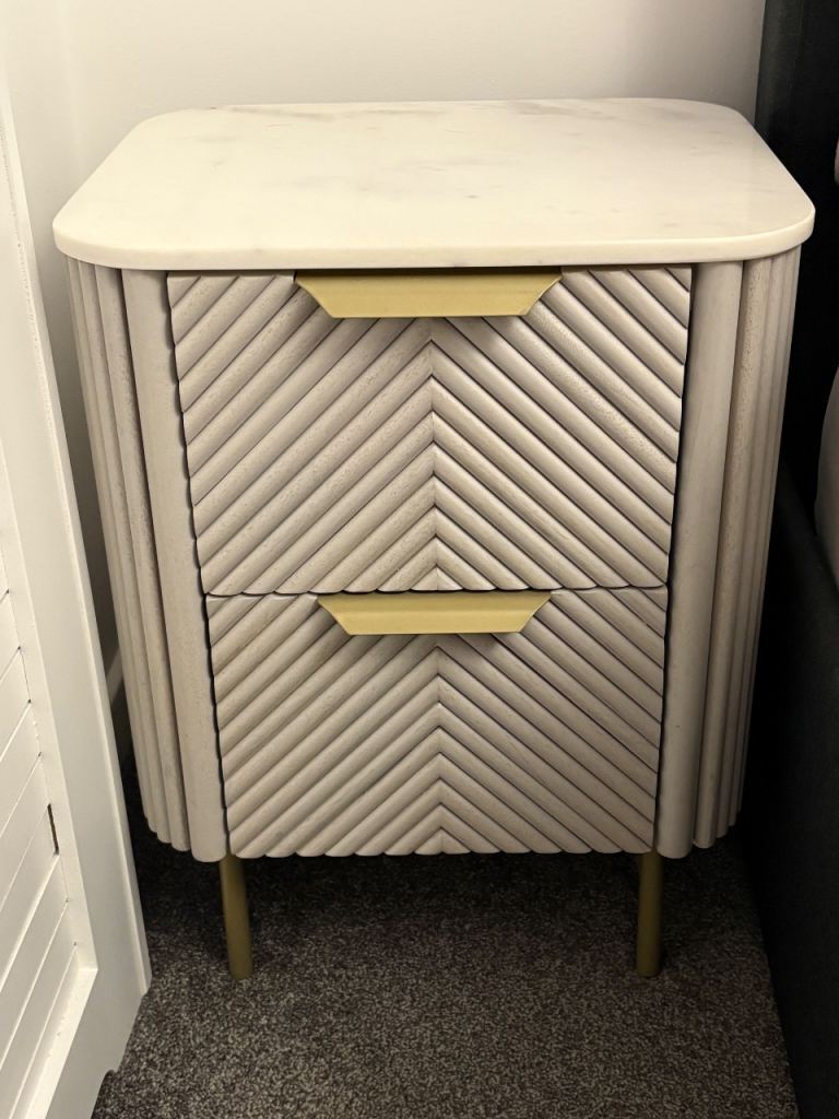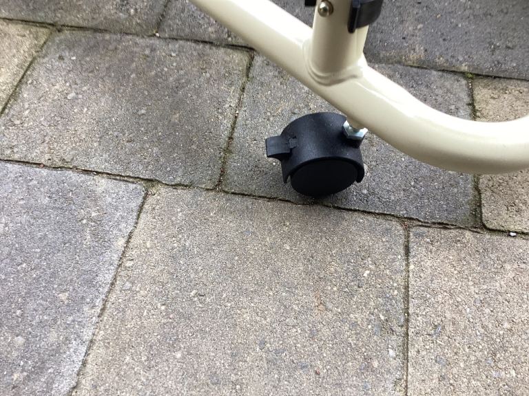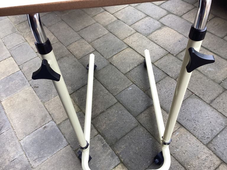 Over-bed table . Wood effect top and cream frame . As new condition as hardly used . Table top is 600x400mm and height adjustable from approx 650mm to 1000mm. On castor wheels so easier to move. Collection only